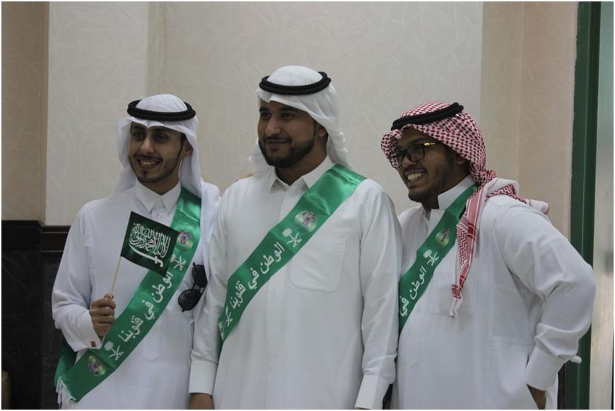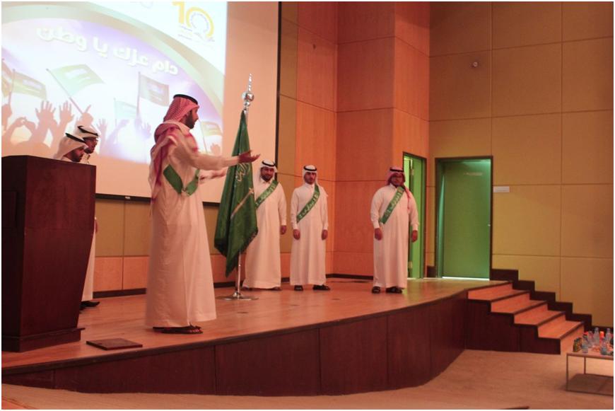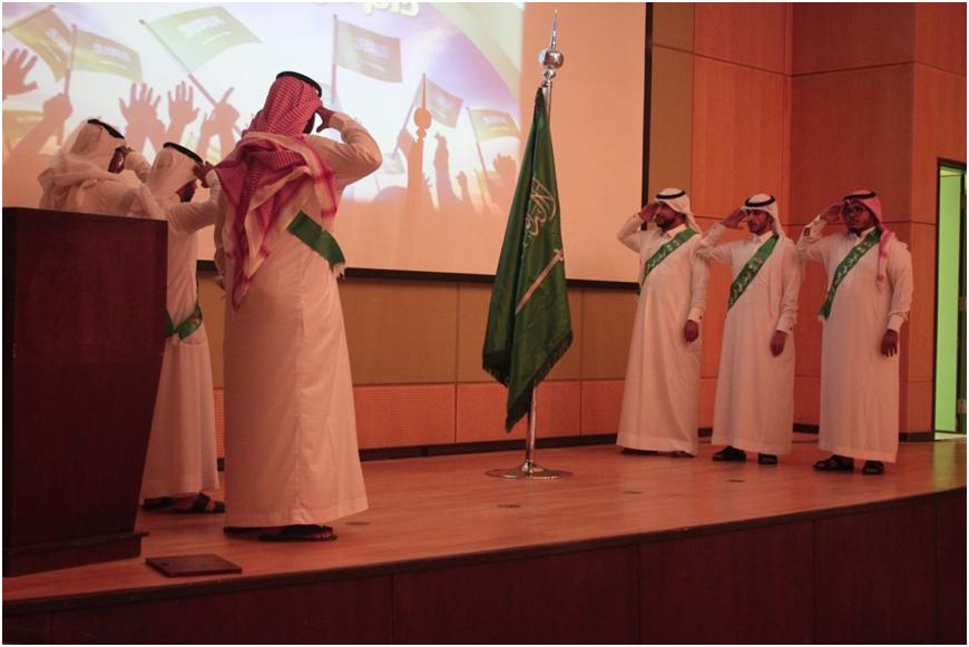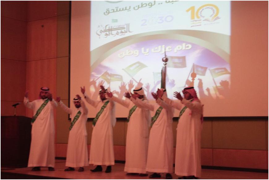 شمل الحفل على العديد من الفقرات حيث تلى ذلك النشيد الوطني للبلاد، ومن ثم قدم قسم الفيزياء أوبريت بعنوان لبيه يابلادي, بعدها عرض قسم القانون فيلماً وثائقياً بعنوان حكاية علم, عَقبها ألقى عدداً من القصائد في حب الوطن والتي أداها كلاً من الطالب/ راشد النويصر والطالب/ تركي بن محمد العنزي ثم العرضة السعودية.
