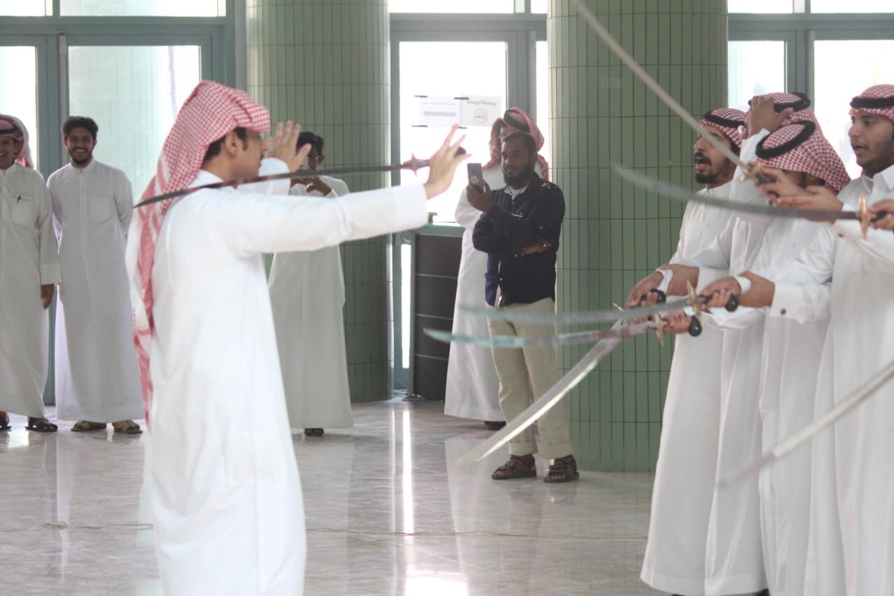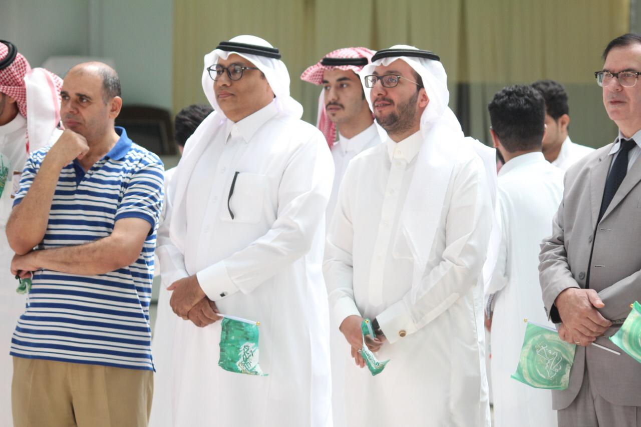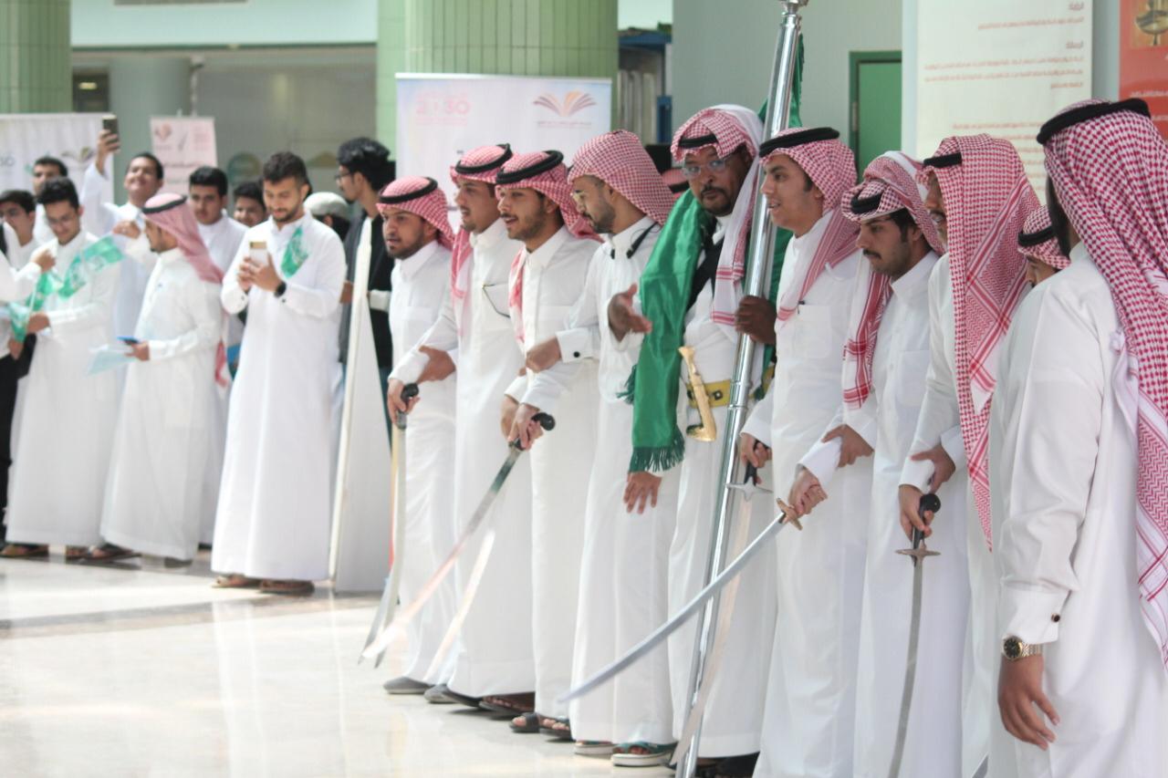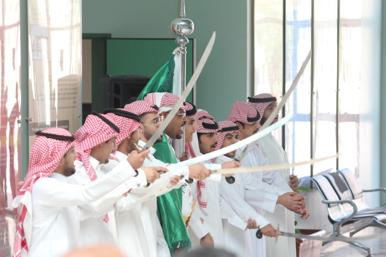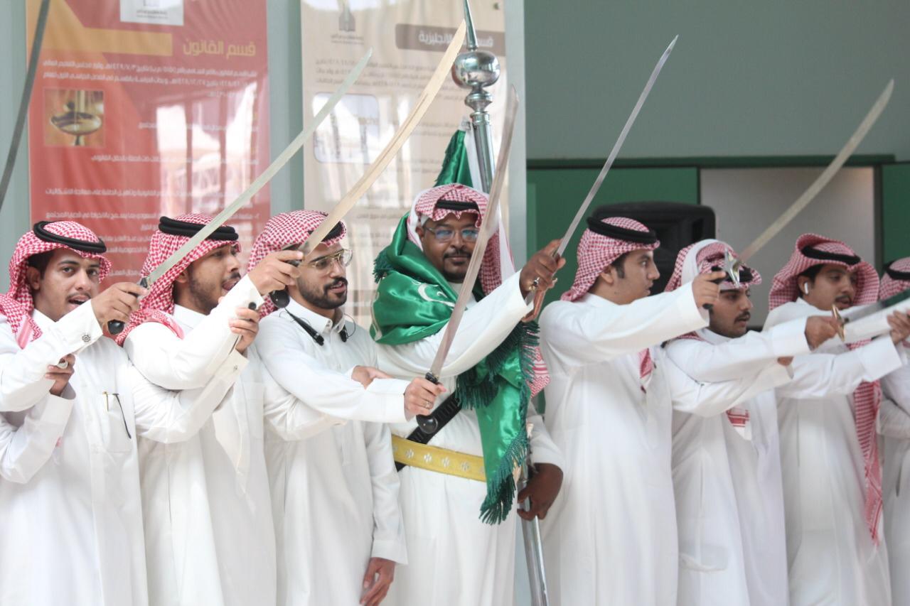 برعاية من سعادة العميد الدكتور / عبدالرحمن الحارثي نظمت كلية العلوم والدراسات الإنسانية بالخرج يوم الاثنين ١٤٤١/٢/١ احتفالا بهيجاً باليوم الوطني ال 89 وبحضور اصحاب السعادة وكيل الكلية للدراسات العليا والتطوير والجودة الدكتور / محمد بن حسين القيسي ووكيل الكلية للشؤون التعليمية والأكاديمية الدكتور/ هارون بن ناصر آل صقر وجمع غفير من اعضاء هيئة التدريس وطلاب الكلية. واشتمل برنامج الحفل على فقرات متنوعة وجاذبة بداية بالعرضة السعودية وكلمة عميد الكلية قدمها بالنيابة عنه الدكتور / محمد القيسي. وتبع ذلك كلمة قدمها الإعلامي المتميز/ ناصر حبتر. وقد تم عرض الأفلام الوثائقية والمشاركات بمسابقة "وطني في صورة" التي فاز معدوها الطلبة في المسابقة الخاصة بهذه المناسبة العزيزة على منسوبي الكلية. وانتهى الحفل بتكريم الضيف الكريم والطلاب الفائزين بالمسابقات الثقافية