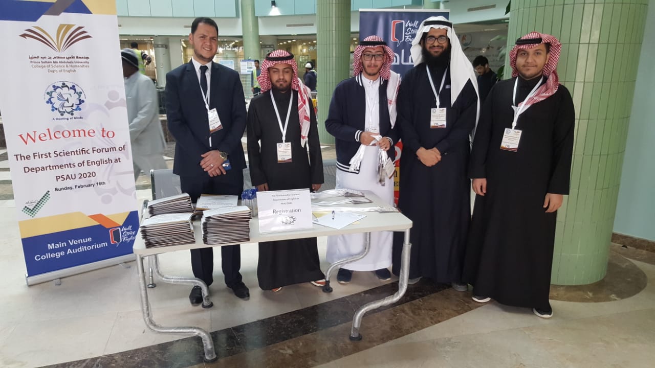 تحت رعاية سعادة الدكتور / مشاري العصيمي وكيل الجامعة للشؤون التعليمية والأكاديمية الدكتور مشاري العصيمي – نظمت كلية العلوم والدراسات الإنسانية بالخرج الملتقى الأول لأقسام اللغة الإنجليزية على مستوى الجامعة وذلك يوم الأحد 16-2-2020. وقد تفضل سعادته بكلمة توجيهية للحضور مباركا هذه الفعالية المميزة. وتلا ذلك كلمة عميد كلية العلوم والدراسات الإنسانية بالخرج ورئيس الملتقى سعادة الدكتور / عبدالرحمن الحارثي والتي افتتح من خلالها الملتقى مرحبا براعي الملتقى وبسعادة عميد السنة التحضيرية / فهد العلوي وأصحاب السعادة وكلاء الكلية وبالحضور الكريم مشيرا الى أهمية هكذا لقاءات جامعة للأقسام الأكاديمية في توحيد المماراسات والأنشطة الأكاديمية والخطط الدراسية. هذا وقد تميز الملتقى بالحضور الكبير من أعضاء هيئة التدريس ذكورا وإناثا من كافة أقسام اللغة الإنجليزية في الجامعة كذلك طلاب قسم اللغة الإنجليزية. وقام سعادة منسق الملتقى ورئيس القسم د/ محمد قاسم – بالتعريف بمحاور الملتقى ألأكاديمي وأهدافه. وقد اشتمل المحور الأول على تقديم للأبحاث العلمية في مسرح الكلية وعلى عرض لعدد آخر منها من خلال ملصقات في بهو الكلية. وفي المحور الثاني تم عرض ونقاش الخطة الدراسية الموحدة التي سيبدأ العمل بها في العام الأكاديمي القادم 1441-1442. أما المحور الثالث فقد تناول خطة برنامج الماجستير في اللغة الإنجليزية المزمع انطلاقه مع بداية العام الأكاديمي القادم أيضا. وفي نهاية الملتقي تفضل سعادة عميد الكلية بتوزيع الشهادات التقديرية للمشاركين في هذا الملتقى.