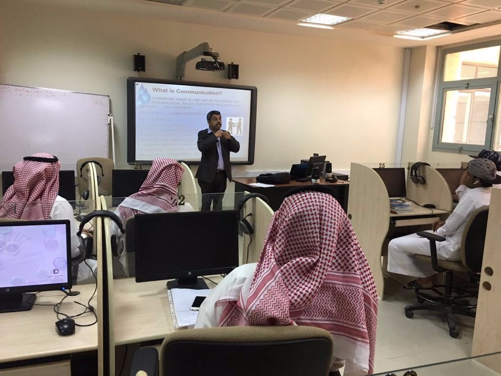 تحت رعاية سعادة عميد كلية العلوم والدراسات الإنسانية، نظمت وحدة الأنشطة الثقافية بالكلية ورشة تدريبية لطلابها ومنسوبيها بعنوان "مهارات الإتصال والعرض الفعال"، وقام بتقديمها مشكوراً وباللغة الإنجليزية الدكتور/ راجا جوبالان من قسم الرياضيات فى يوم الأحد 29/7/1439 هـ، وقد قام الدكتور/ حماده حسانين من قسم اللغة الإنجليزية بالترجمة الفورية من تارة لأخرى لضمان استيعاب وفهم المتدربين الحاضرين الذين لا يجيدون الإنجليزية.