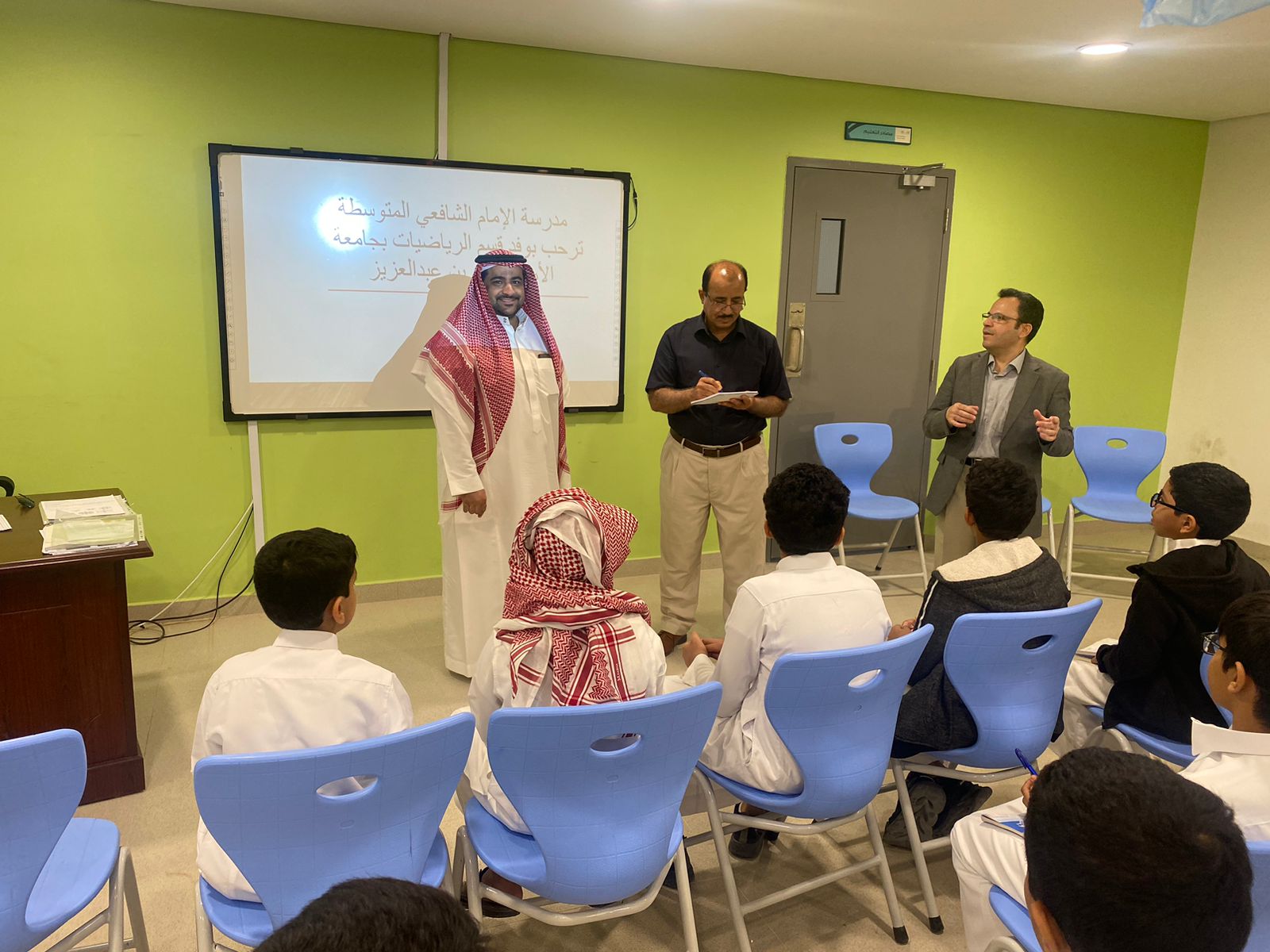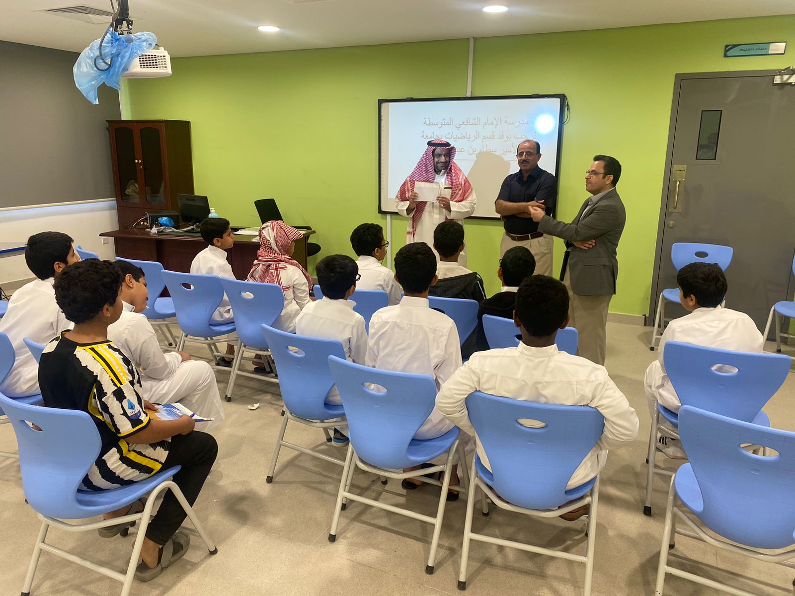في إطار خدمة المجتمع قام وفد من قسم الرياضيات بكلية العلوم والدراسات الإنسانية بالخرج اليوم الأحد ١-١٠-٢٠٢٣ م الموافق ١٦-٠٣-١٤٤٥ هـ بزيارة إلى مدرسة متوسطة الإمام الشافعي بالخرج.