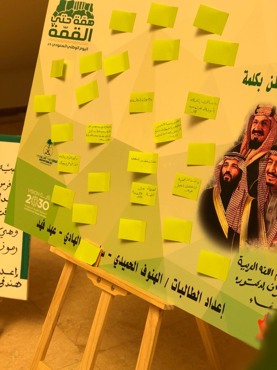 وقد صاحب الاحتفال عدّة فعاليات تشاركت فيها الطالبات مع الطاقم الإداري وأعضاء هيئة التدريس، من تلك الفعاليات معرض للصور تضمن صورًا فوتوغرافية و لوحات فنية تشكيلية من عمل الطالبات، وصاحب الاحتفال حفل خطابيّ اشتمل على فيديو قصير بعنوان "مسيرة المجد" كما وجه كل قسم من أقسام الكلية كلمةً إلى جنودنا البواسل المرابطين في الحدود. واختتم الحفل بتوديع الضيوف بمثل ما استقبلوا به من حفاوة وتكريم.