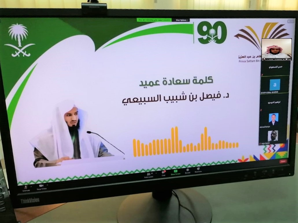 أقامت كلية العلوم والدراسات الإنسانية بالسليل اليوم الاثنين الموافق 2/11/ 1442هـ احتفالاً عبر zoom بمناسبة ذكرى اليوم الوطني السعودي 90 بحضور عميد الكلية المكلف الدكتور فيصل بن شبيب السبيعي ووكلاء الكلية وأعضاء هيئة التدريس والموظفين والطلاب .