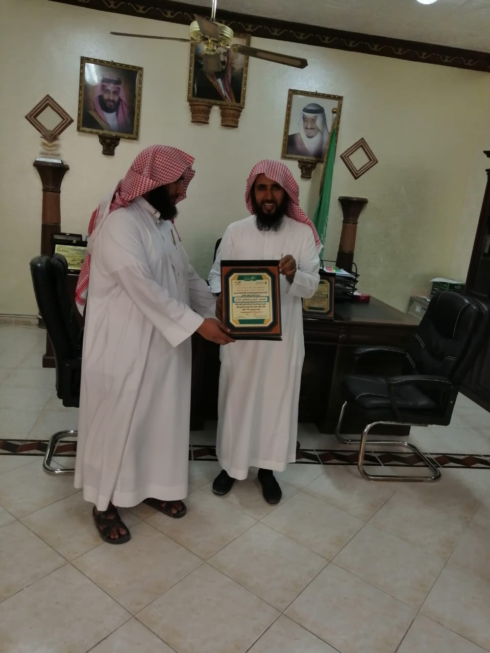 وفي نهاية اللقاء قدم وكيل الكلية الدكتور فالح العمور شهادة شكر وتقدير للدكتور / أحمد الشثري شاكراً له حضوره ودعمه لأنشطة الكلية.