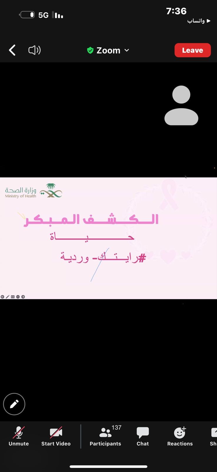 نظمت وحدة العمل الطلابي ممثلة في الأنشطة الثقافية والاجتماعية ووحدة شؤون الطالبات بكلية العلوم والدراسات الإنسانية بالسليل الحملة التوعوية في اليوم العالمي لسرطان الثدي بالتعاون مع المديرة العامة للشؤون الصحية في منطقه الرياض وتضامنا مع حملة أكتوبر محاضرة توعية ضمن مبادرة صحتك في وعيك بعنوان (التوعية بسرطان الثدي) وذلك في يوم الثلاثاء الموافق: 1445/3/25هـ ، وقد أقيمت المحاضرة عبر برنامج الزووم.