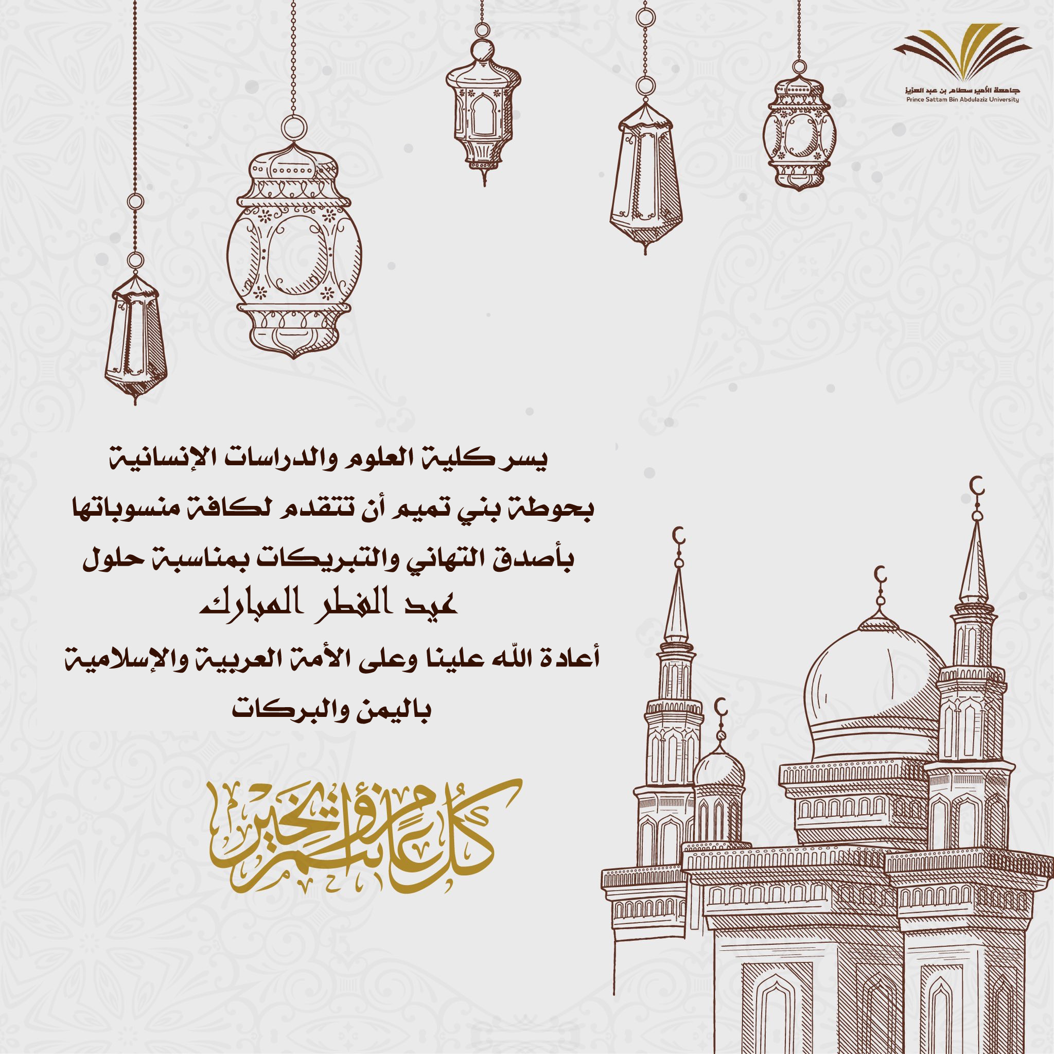 احتفت كلية العلوم والدراسات الإنسانية بحوطة بني تميم بعيد الفطر المبارك صباح يوم الاحد الموافق ٦/ ١٠/ ١٤٤٠ هـ ، حيث تم استقبال منسوبات الكلية بالورود وتهنئتهم بهذه المناسبة، داعين الله سبحانه وتعالى أن يعيده على الوطن والأمة العربية والإسلامية باليمن والبركات، وأن يديم على وطننا نعمة الأمن والأمان والرخاء والاستقرار وسائر بلاد المسلمين.