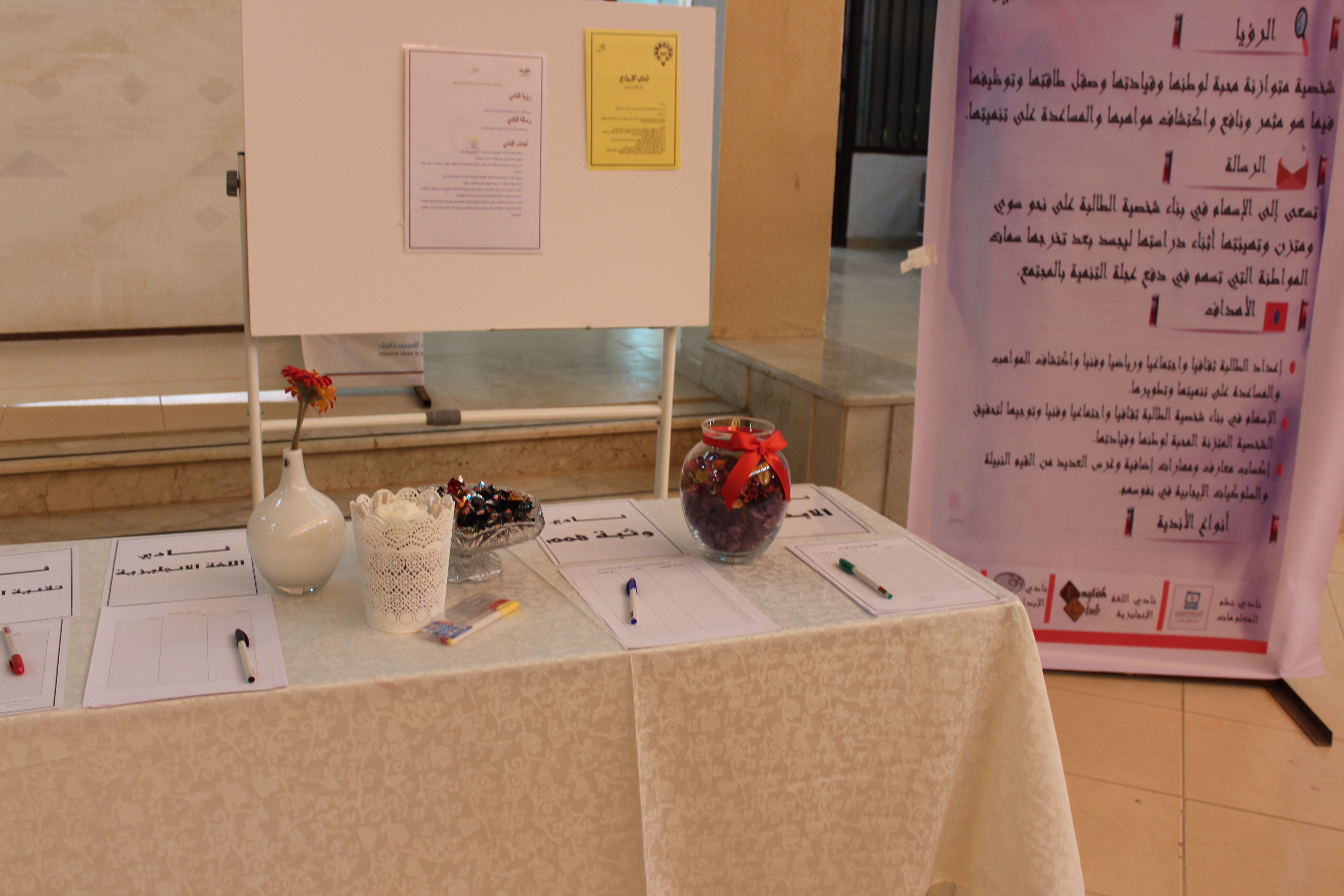 أقامت الأندية الطلابية في كلية العلوم والدراسات الإنسانية بحوطة بني تميم يومي الأربعاء والخميس 14-15 /1 / 1439 هـ بحضور عميدة الدكتورة حصة بنت سعود الهزاني و إشراف منسقة الأندية الأستاذة فوزية الجمعة لقاء تعريفي بالنوادي والأركان الخاصة بها (نادي وثبة همم، نادي اللغة الانجليزية، نادي الإبداع، نادي تقنية المعلومات). تضمن اللقاء تعريف مشرفات الأندية للطالبات المستجدات بمهام كل نادي على حده وأهدافه وأهميته في تعزيز الجوانب التربوية وعرض بعض الأعمال في الفصل السابق والإجابة على أسئلة المستجدات وتعبئة الاستمارات لمن ترغب بالالتحاق منهن.