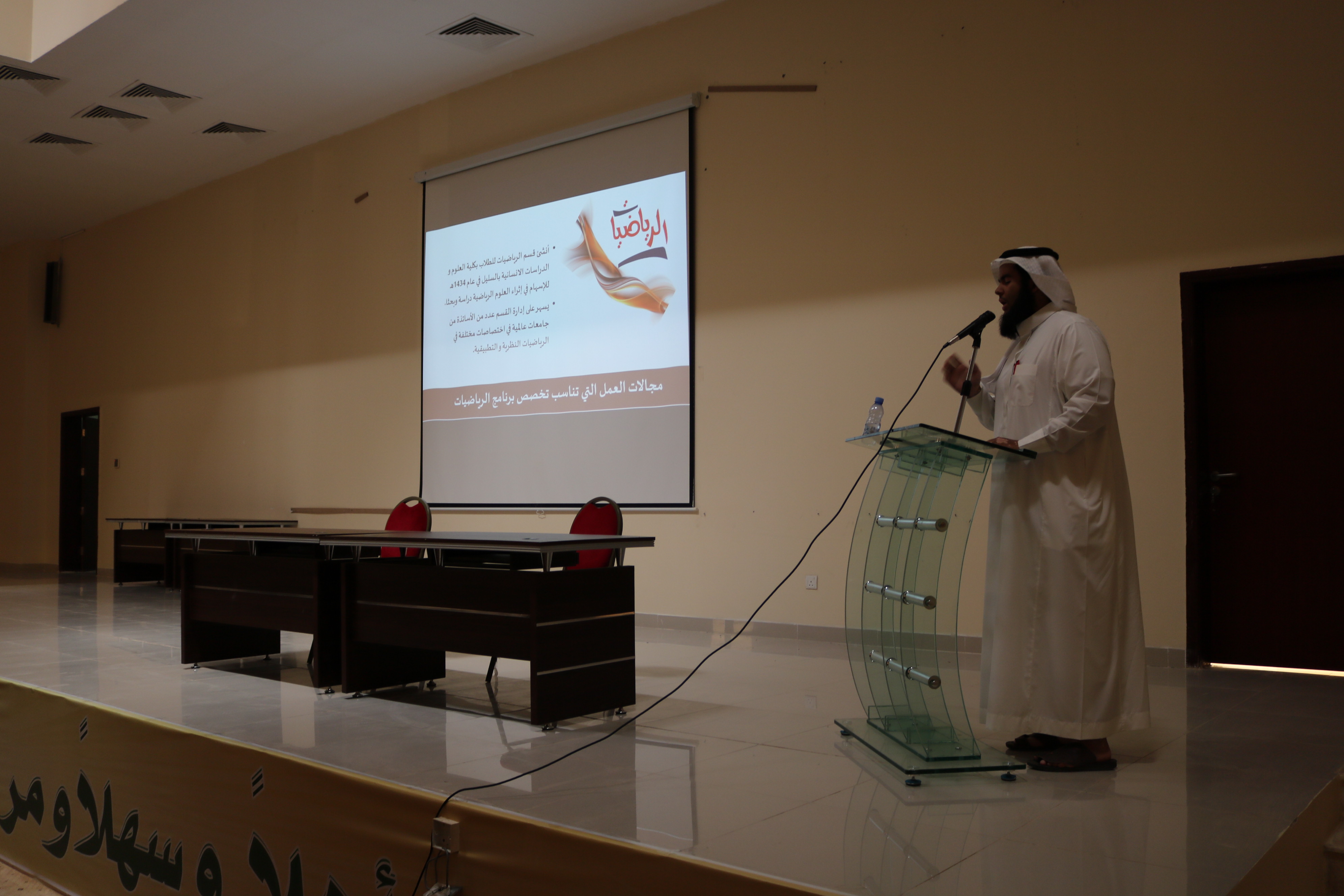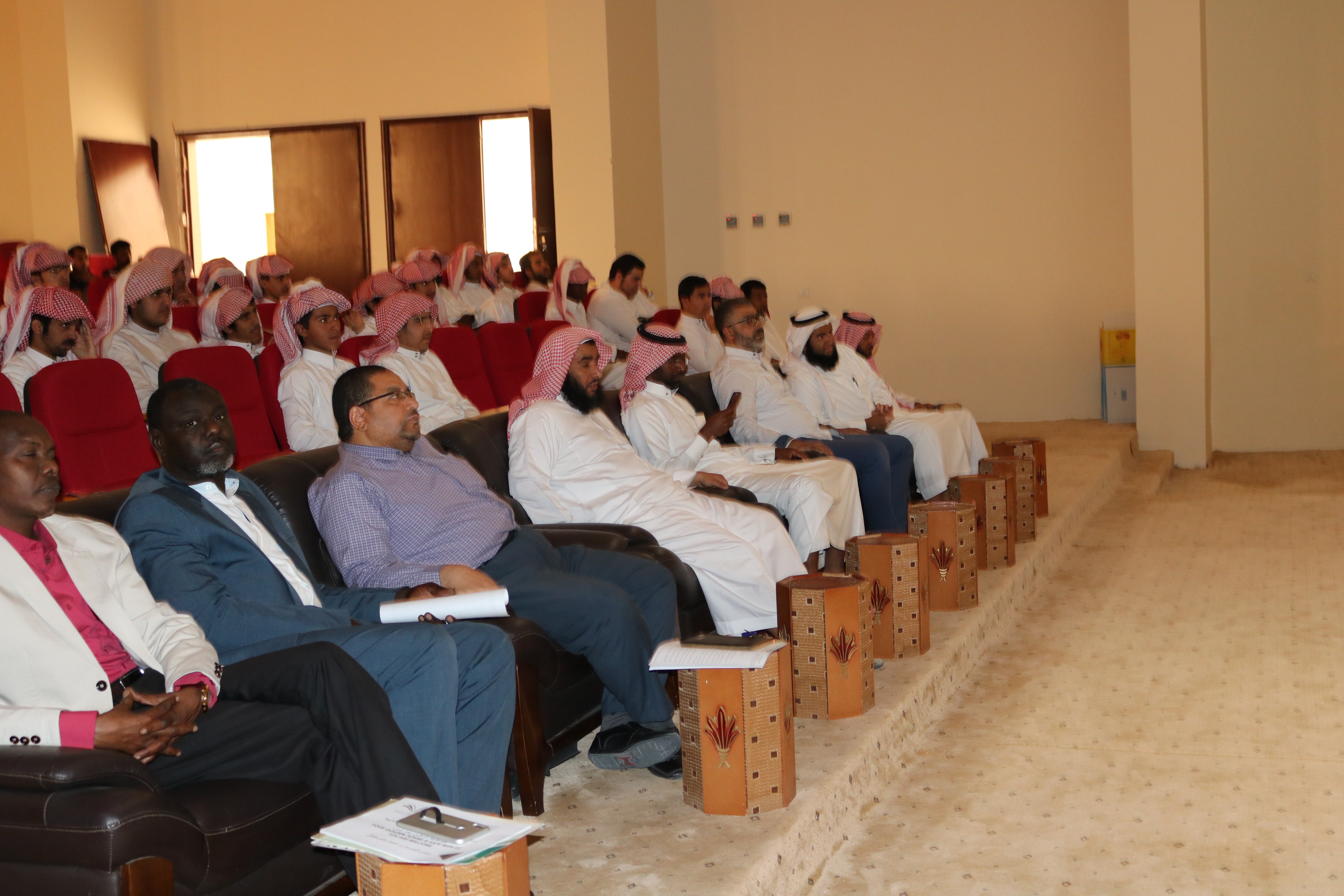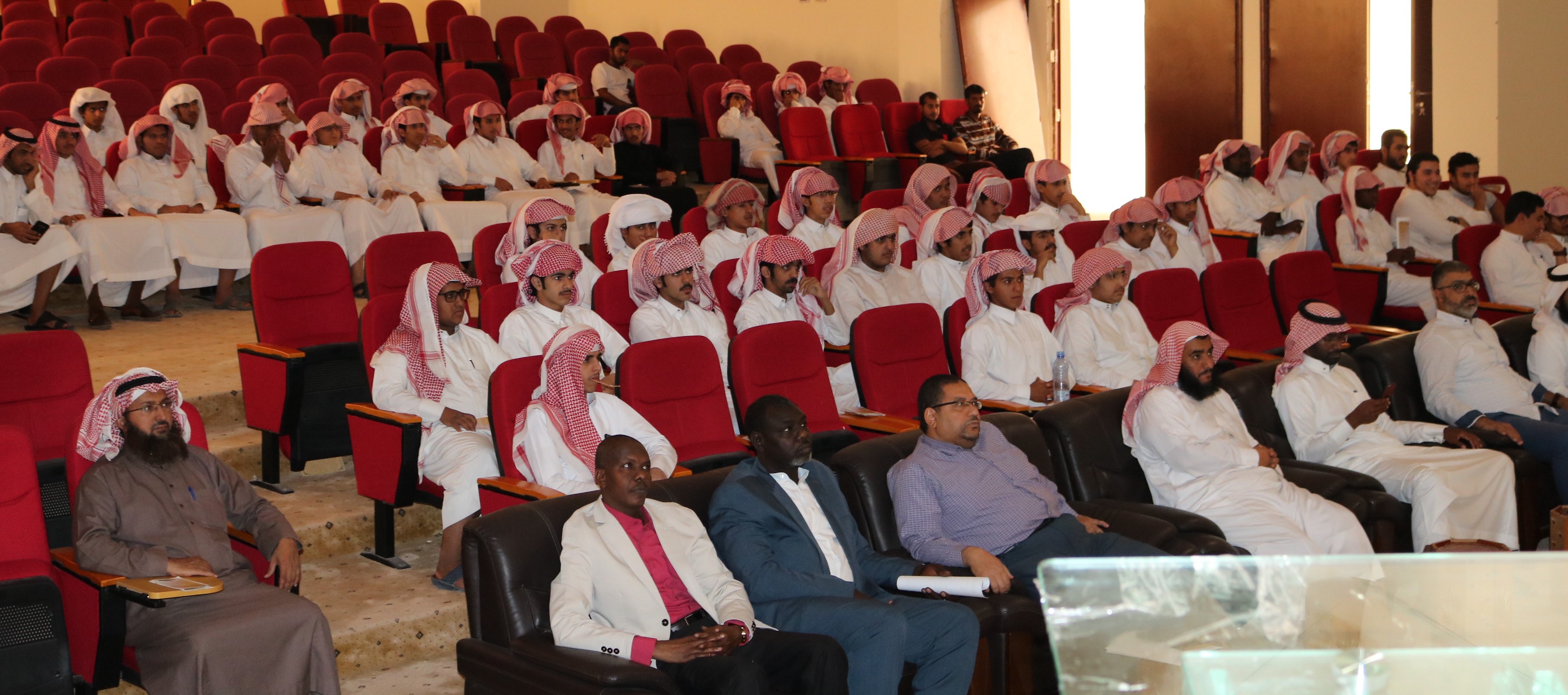 وبعده تم عرض مرئي لفعاليات الكلية ثم تناوب مشرفي الأقسام بالكلية بعرض نبذة تعريفية عن أقسامهم وبعدها فتح باب الحوار مع الطلاب وإجابة تساؤلاتهم