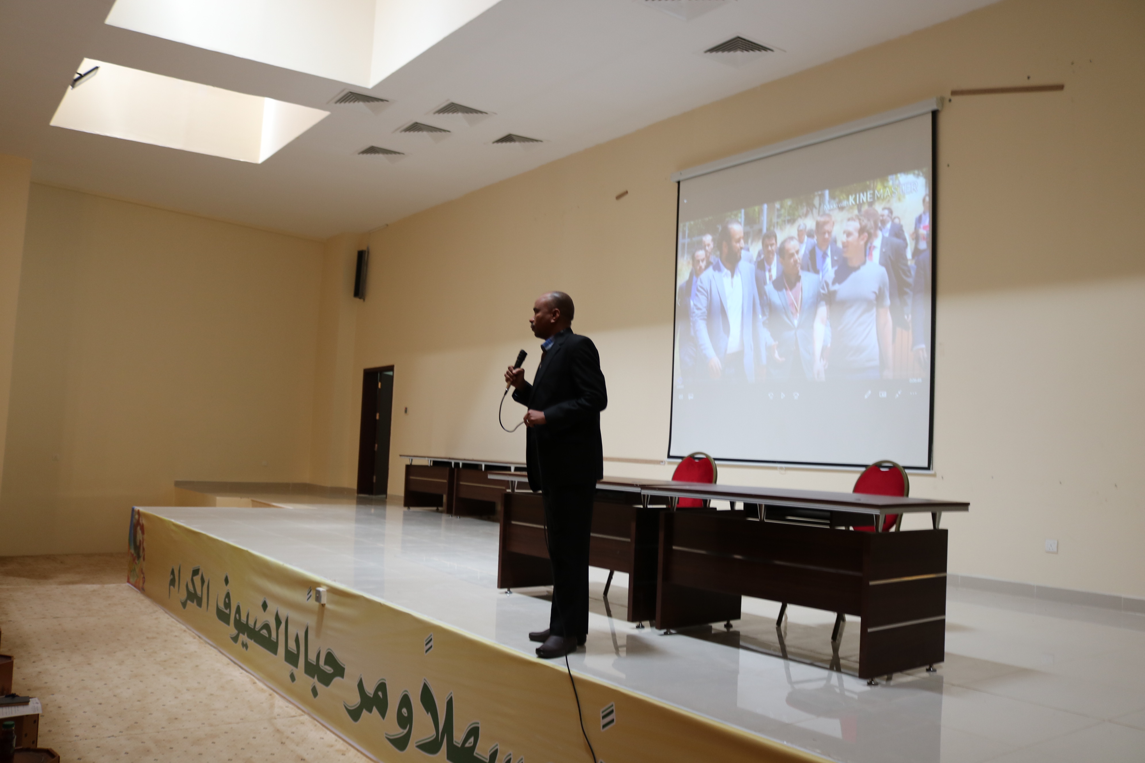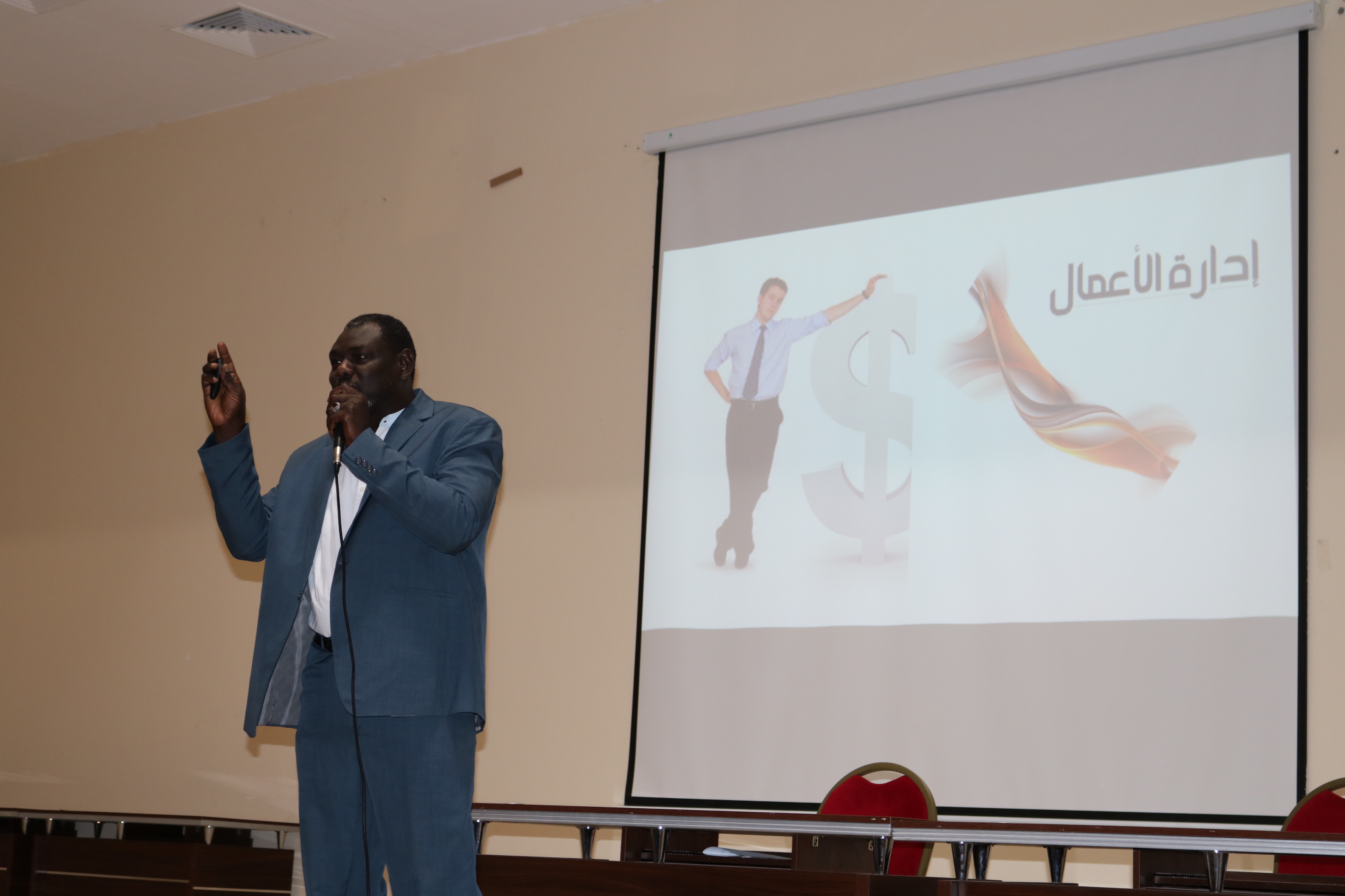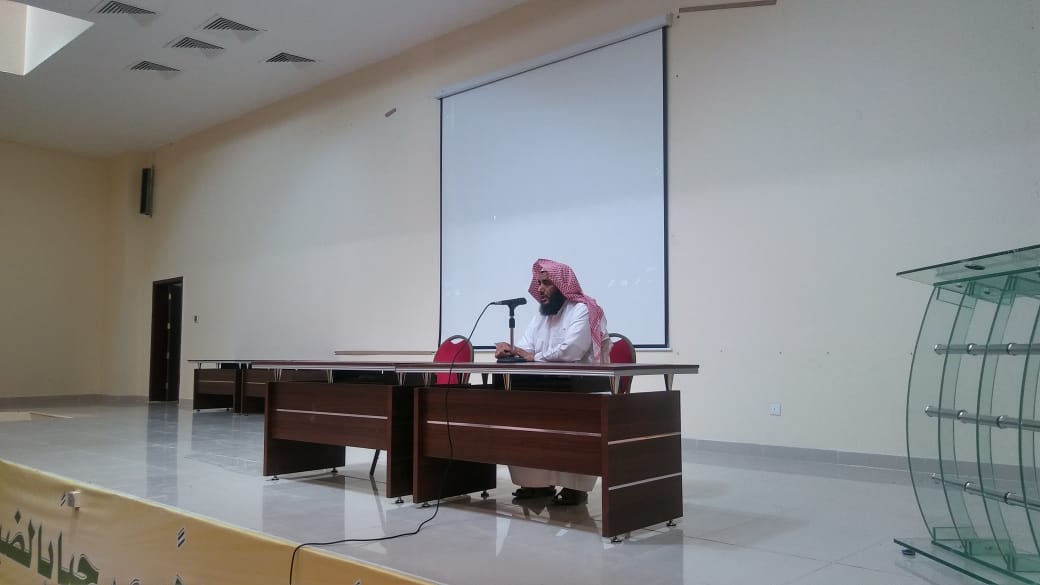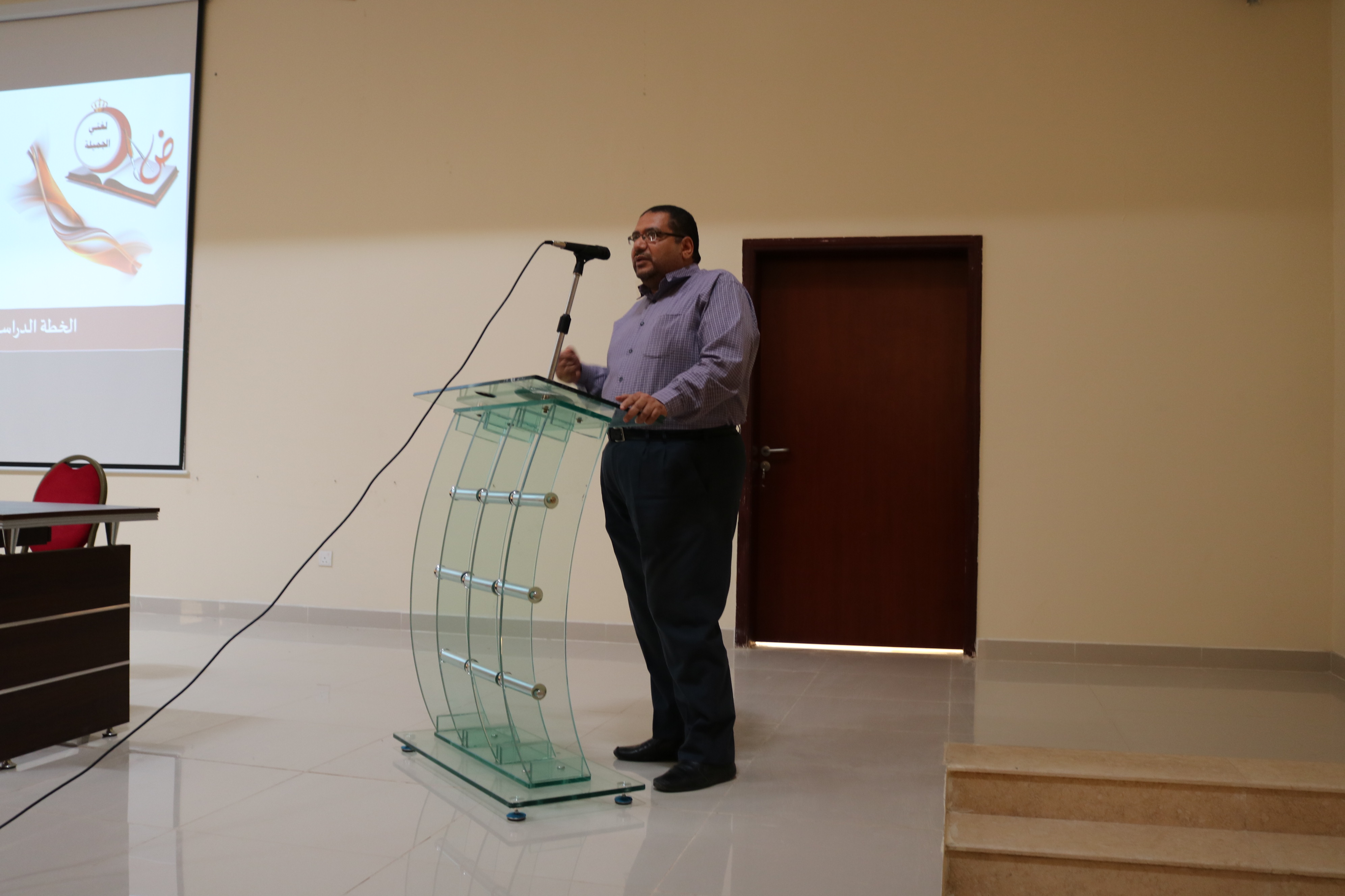 وبعده تم عرض مرئي لفعاليات الكلية ثم تناوب مشرفي الأقسام بالكلية بعرض نبذة تعريفية عن أقسامهم وبعدها فتح باب الحوار مع الطلاب وإجابة تساؤلاتهم