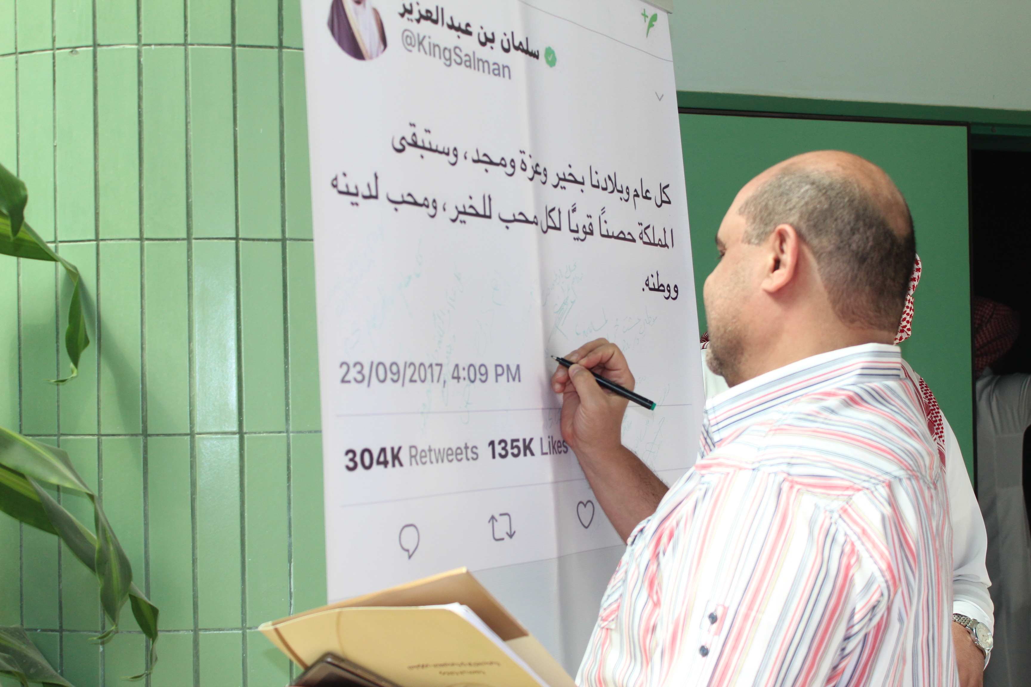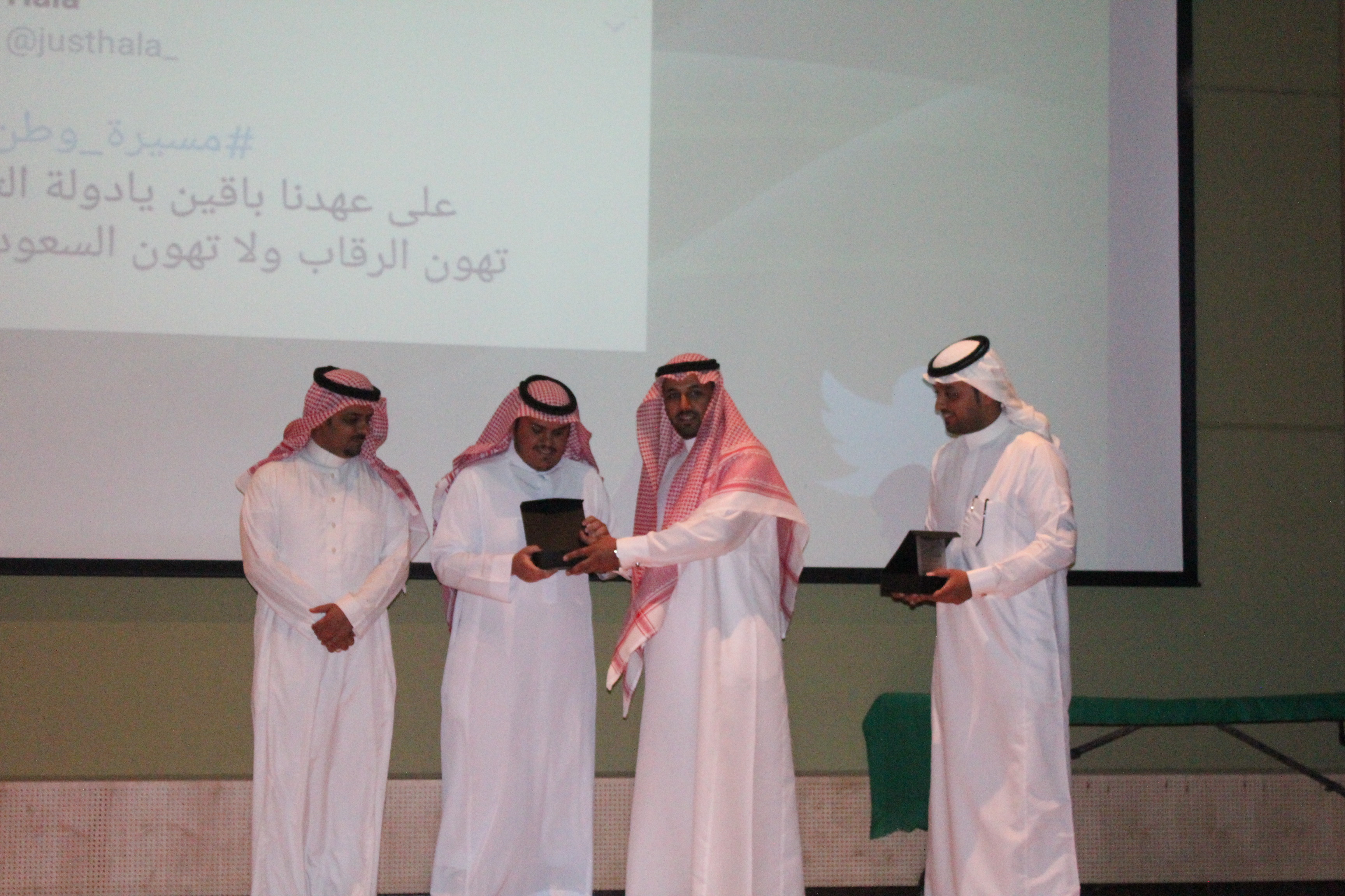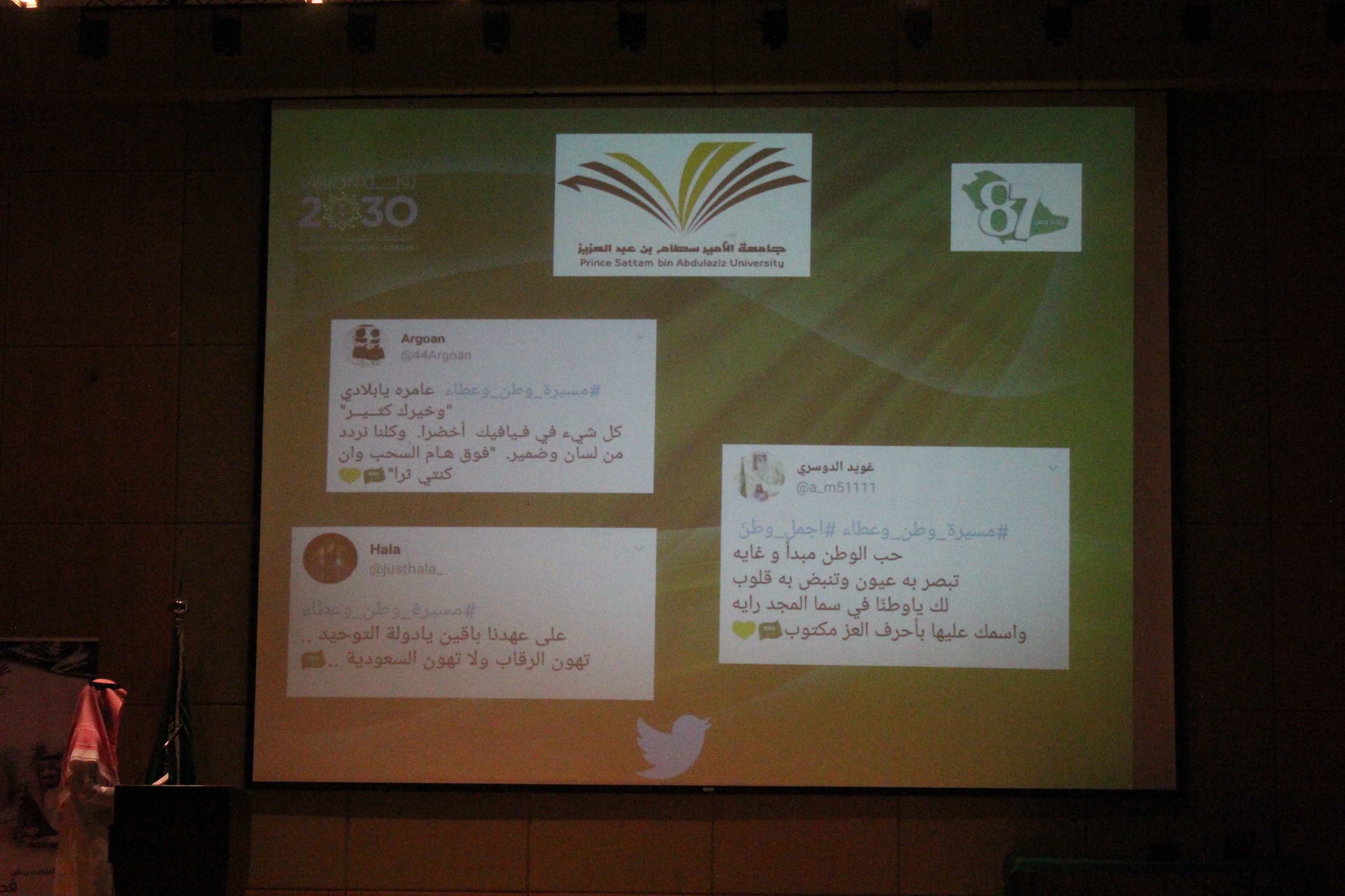 جدير بالذكر أن جديد الحفل هذا العام كان من إبداع اللجنة الإعلامية حيث تم إطلاق مسابقة أجمل تويته على موقع التدوينات المصغر تويتر للتعبير عن حب الوطن والانتماء إليه وتحت هاشتاج #مسيرة_وطن_وعطاء ، شهدت المسابقة مشاركة أكثر من 120 طالب وطالبة ،وكانت المراكز الثلاثة الأولي من نصيب الطالبات ، حيث غردت الطالبة – غدير الدوسري - صاحبة المركز الأول قائلة " حب الوطن مبدأ وغابة تُبصر به عيون وتنبض به قلوب ، لك يا وطنّا في سما المجد راية واسمك عليها بأحرف العز مكتوب" ، بينما كان المركز الثاني والثالث من نصيب الطالبتان هلا العنزي و نجود عبيد الحجاب على الترتيب. وكان من الفقرات اللتي لاقت صدى من الحضور هو الرد على تغريدة خادم الحرمين الشريفين الملك سلمان بن عبدالعزيز, حيث كان هناك لوحتين تم وضع التغريدة فيها وتم الرد من الحضور كتابيا. وفي الختام تم تكريم الفائزين وتقطيع الكعكة احتفالا ب اليوم الوطني.