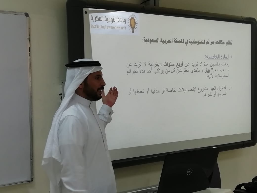 تحت رعاية معالى مدير الجامعة بالتعاون مع وحدة التوعية الفكرية ضمن مشروع "نحو جامعة واعية ٣" نظمت كلية العلوم والدراسات الإنسانية بالخرج فى يوم الخميس الموافق ١٤/٧/١٤٤٠هجري حلقة نقاش بعنوان "الجرائم المعلوماتية" قدمها الاستاذ / شباب الغامدي و قد حضر ها جمع من الطلاب لوحظ تفاعلهم مع موضوعها لما له من مميزات تمس حياتهم العملية والاجتماعية. وفي ختام الفعالية تفضل سعادة الدكتور وكيل الكلية لشئون الطلاب بتقديم شهادة تقدير وامتنان لمقدم الحلقة تقديرا له على جهودة فى إنجاح البرنامج التوعوي لأبنائنا طلاب الكلية.