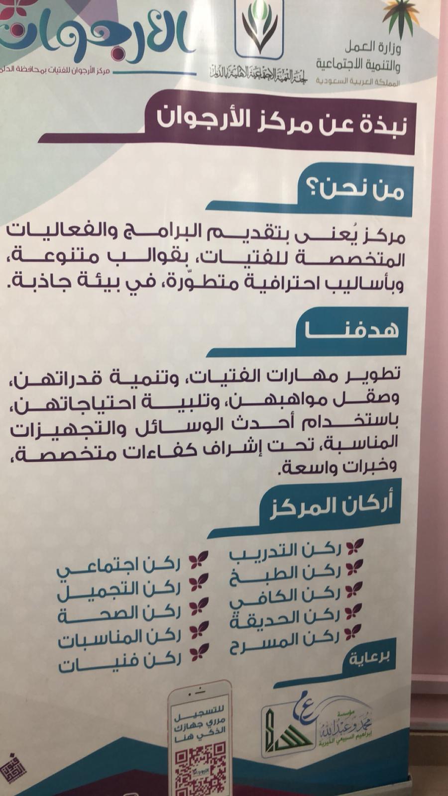 كما تم استضافه مركز الارجوان بالدلم متمثل في أ / ابتهاج الجدوع .حيث عرفت بالمركز وأهدافه وبرامجه وخدماته وإنجازاته وقبل انتهاء البرنامج أقيمت مسابقة للطالبات.