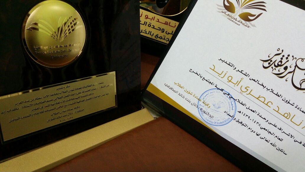 حيث حصلت كلية المجتمع على درع التميز في الأنشطة الثقافية والاجتماعية الطلابية.