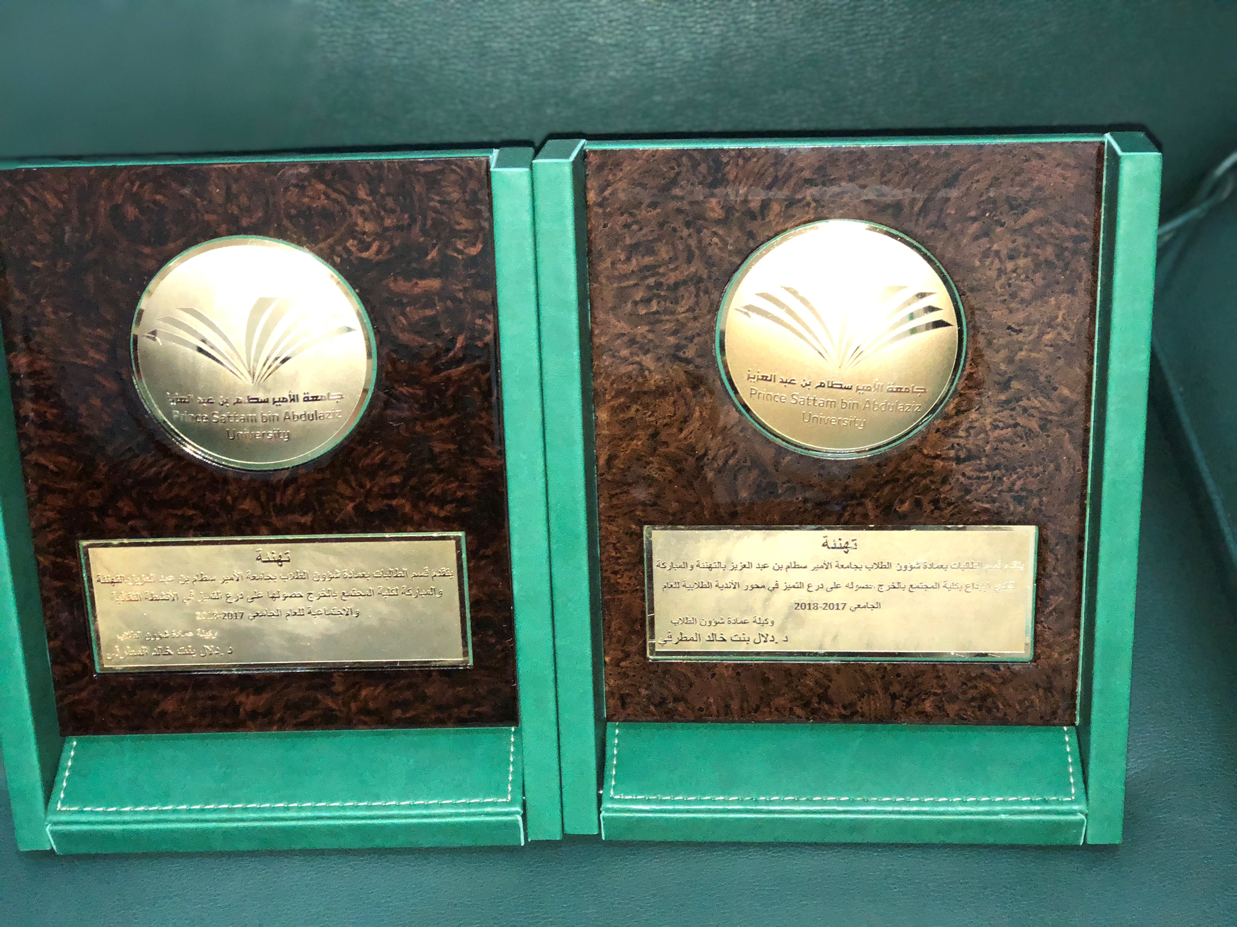 كما حصلت على درع التميز في محور الأندية الطلابية.