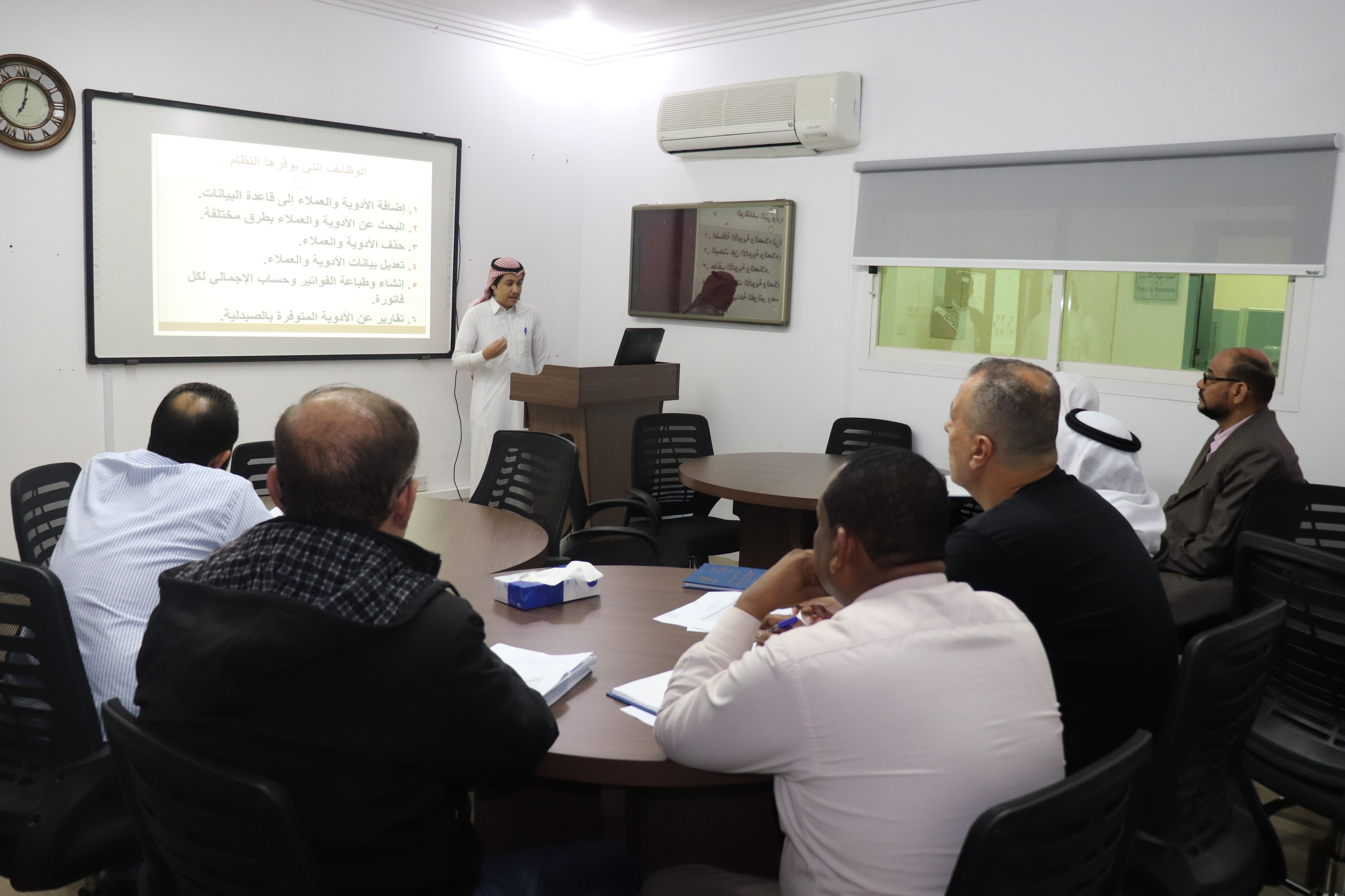 بحضور سعادة عميد الكلية المجتمع بالخرج الدكتور/ حمد بن عبدالله القميزي تم مناقشة مشاريع التخرج بقسم الحاسب الآلي للفصل الدراسي الأولمن العام الجامعي 1441 هـلطلاب برنامج البرمجة وعلوم الحاسب وبرنامج الشبكات والإنترنت وذلك يوم الثلاثاءالموافق 13 / 04 /1441 هــ، وكان عدد مشاريع التخرج لهذا الفصل (4) مشاريع، في تخصص الشبكات والإنترنت والبرمجة وعلوم الحاسب كما يلي: المشروع الأول:النظام الآلي للتحكم بالصور، هدف المشروع هو بناء نظام متكامل متنقل لإلتقاط الصور وعرضها على صفحة ويب، يمكن النظام المستخدم من الوصول إلى الكاميرا عن بعد ويسمح بالتقاط الصور والتعديل عليها، ويتيح أيضاَ النظام بالتقاط الصور فيأوقات محددة تحدد على رغبة المستخدم، يتكونالنظام من لوحة Raspberry Pi وكاميرا، يتم ربط النظام في الحاسب للقيام بعمل معالجة مركزية وبرمجة للوحة الأم، المشروع الثاني:نظام استشعار الحركة، هدف المشروع هو إكتشاف حركة الأجسام و عرض النتائج على صفحة ويب، يتم استخدام حساس من نوع PIR sensor يقوم بإكتشاف الحركة عبر الأشعة الحرارية التي تصدر من الاجسام، يتميز الحساس بالدقة والسرعة والكفاءة العالية، عند حدوث أي استشعار الحركة يقوم الحساس بالعمل وإرسال القيم إلى جهاز تحكم من نوع Arduino ثم يقوم جهاز التحكم بعرضها على الخادم وصفحة الويب،لعرض النتائج على الشبكة المحلية باستخدم كرت شبكة Ethernet، يقوم النظام بتحديث النتائج على صفحة الويب كل 5 ثواني، المشروع الثالث:نظام طلب الطعام عبر الانترنت، هدف المشروع من نظام طلب الطعام عبر الإنترنت و أتمتة النظام اليدوي الحالي يسمح النظام بإنشاء سلة غذائية بحيث تمكن المستخدم من الطلب لعدة مرات يسمح النظام بإنشاء حسابات للزوار. يسمح النظام بعمل تاريخ لعمليات الشراء يمكن للمشرف معالجة الوظائف مثل إضافة عناصر طعام جديدة ، وتعديل / حذف عناصر الطعام ، وتمكين / تعطيل عناصر الطعام وفقًا للموسم والتوافر،المشروع الرابع: تطويرنظاملإدارةصيدلية، هدف المشروع تطويرنظامآليلإدارةعمليات البيع في الصيدلية وذلكمن خلال مجموعة من الشاشات وقاعدة بيانات تحتوي على العديد من الجداول للأدوية والعملاء والفواتير، يدير النظام قاعدة بيانات الأدوية المتوفرة بالصيدلية حيث يمكن إضافة الأدوية إلى قاعدة البيانات وكذلك إجراء عملياتالحذفوالبحثوالتعديلوطباعةتقاريرعنالأدويةالمتوفرةفيقاعدةالبيانات. أيضاً في هذا النظام سيتم إدارة فواتير البيع من حيث الإنشاء وحساب الإجمالي للأصناف التي تم إدراجها في الفاتورة كما سيتم إضافة بيانات العميل للفاتورة من خلال قاعدة بيانات العملاء. لتطوير النظام سيتم استخدام لغة سي شارب في البرمجة،وبرنامج مايكروسوفت أكسس لبنا قاعدة البيانات كما سيتم اتباع نموذج الشلال (Waterfull) في التطوير حيث يتم تحليل المشكلة ووصفها في البداية، ثم تصميم ER-D، ثم تصميم Relational Schema، ثم تنفيذ قاعدة البيانات، وتصميم وبرمجة الشاشات للحصول على التطبيق، وأخيراً ربط التطبيق بقاعدة البيانات وبرمجة الوظائف المختلفة بالتطبيق، وتصميم التقارير الناتجة من النظام وربطها بالتطبيق،وأيضاً بمتابعة سعادة عميد كلية المجتمع بالخرج الدكتور/ حمد بن عبدالله القميزي تم مناقشة مشاريع التخرج بقسم الحاسب الآلي للفصل الدراسي الأول من العام الجامعي 1441 هــ لشطر الطالبات لبرنامج البرمجة وعلوم الحاسب وبرنامج الشبكات والإنترنت وذلك يومي الثلاثاء والأربعاء الموافق 13-14 / 04 /1441 هــ ، وكان عدد مشاريع التخرج لهذا الفصل (9) مشاريع، في تخصص البرمجة وعلوم الحاسب والشبكات والإنترنت كما يلي: المشروع الأول:موقع لإدارة وتنظيم حجز القاعات والمعامل في كلية المجتمع، هدف المشروع تصميم موقع يستفيد منه أعضاء هيئة التدريس والطلبة في الكلية يحتوي على قاعدة بيانات لجميع معامل وقاعات الكلية ومرافق كل قاعة (سبورة، سبورة ذكية، بروجكتر، عدد الكراسي وغيرها)، ويمكن لعضو هيئة التدريس إرسال تنبيه للطلبة في حال تغيير القاعة ا