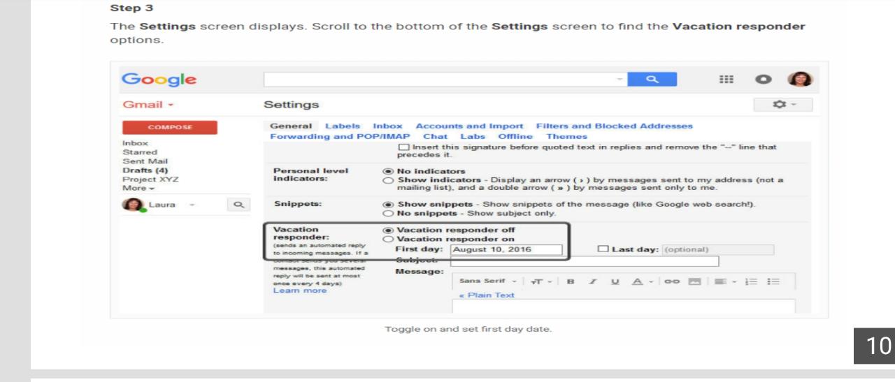 تعريف البريد الالكتروني وأهميته وكيفية إنشاء بريد الكتروني وكيفية حمايته وإنشاء كلمة مرور قوية وايضاً تم التعرف على آليه إنشاء رسائل البريد الإلكتروني وإعادة توجيه الرسائل كمل تم التعرف على تفعيل خدمة الرد الآلي للبريد الإلكترونية وكيفية تفعيل خاصية الغاء بريد الكتروني تم ارساله قبل الاستلام واستخدام خاصيه المحادثات في البريد الإلكتروني