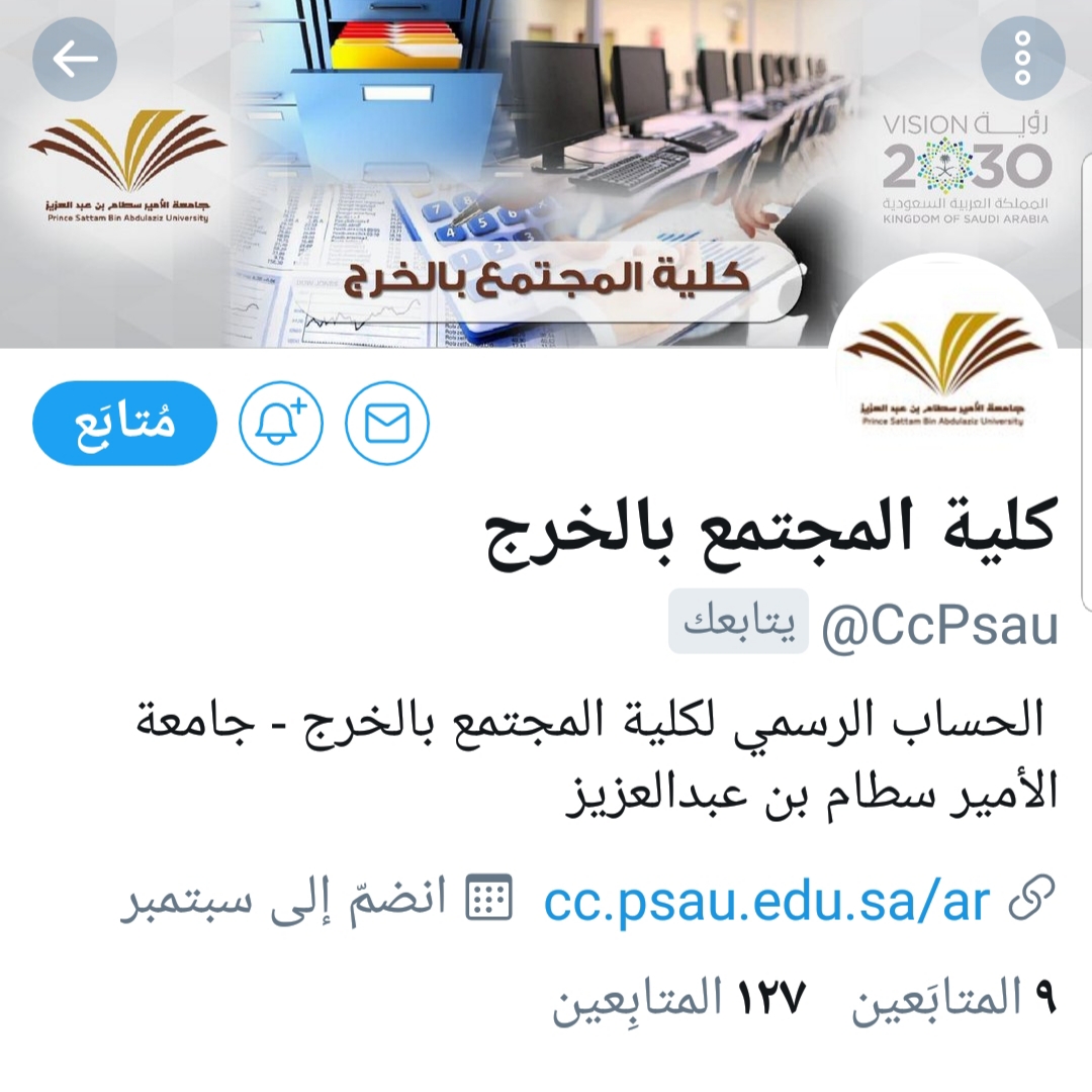 دشن سعادة عميد كلية المجتمع بالخرج الدكتور حمد بن عبدالله القميزي الحساب الرسمي للكلية على حساب التواصل الاجتماعي (توتير)، وأوضح عميد الكلية د. القميزي أن الكلية تحرص على تفعيل وسائل التواصل الاجتماعي مع الطلاب والطالبات ومع أفراد المجتمع، وقد بدأت بذلك من خلال تدشين هذا الحساب، وأوضح د. القميزي ان الحساب سوف يتضمن أخبار الكلية (شطر الطلاب والطالبات)، وكذلك الأخبار الأكاديمية والعلمية لأعضاء هيئة التدريس، والأخبار الإدارية للموظفين، كما سيتضمن معلومات مفيدة تساعد الطلاب والطالبات في مسيرتهم التعليمية.