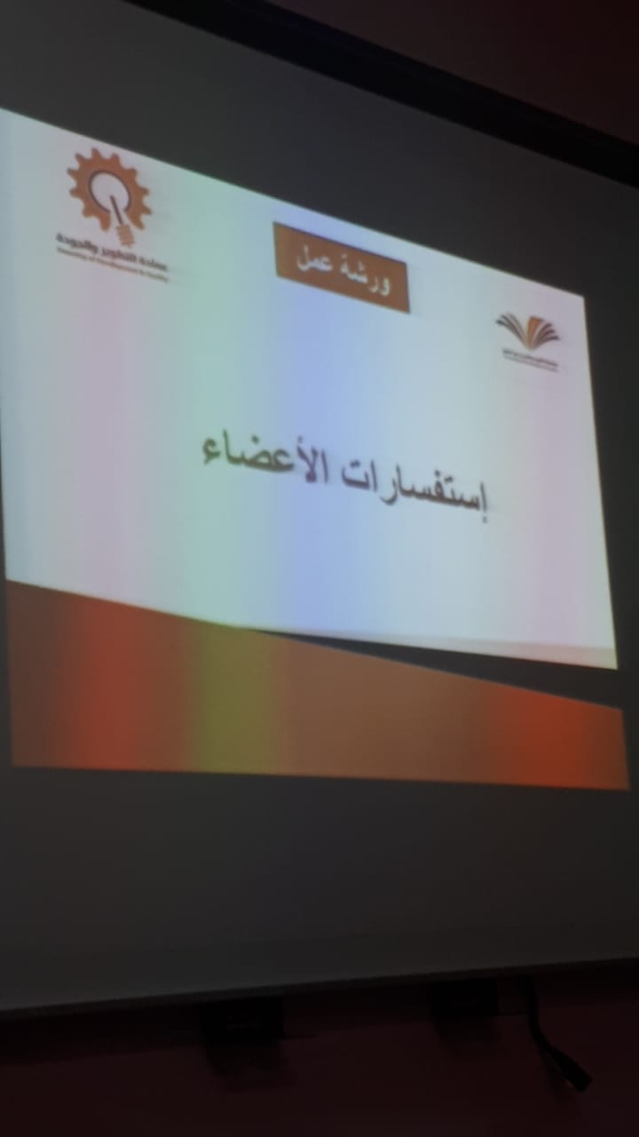 حيث تطرقت الأستاذة لأهمية الزيارة من قبل الاعتماد المؤسسي وتمت مناقشة الأعضاء في أهم المحاور وكيفية الإجابة على الاستفسارات المطروحة، كما كان هناك تبادل خبرات واراء اعضاء هيئة التدريس، وتم التوصل إلى توصيات تساهم في تطوير الكلية ومخرجاتها.