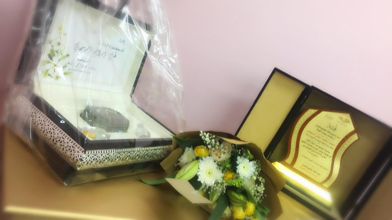 هذا وقد تم التكريم بحضور د. تهاني الدسيماني في حفل تكريم المشاركات في الملتقى التقني الأول المقام في كلية المجتمع بالخرج (أقسام الطالبات)، وبحضور عدد كبير من منسوبات وطالبات الكلية.