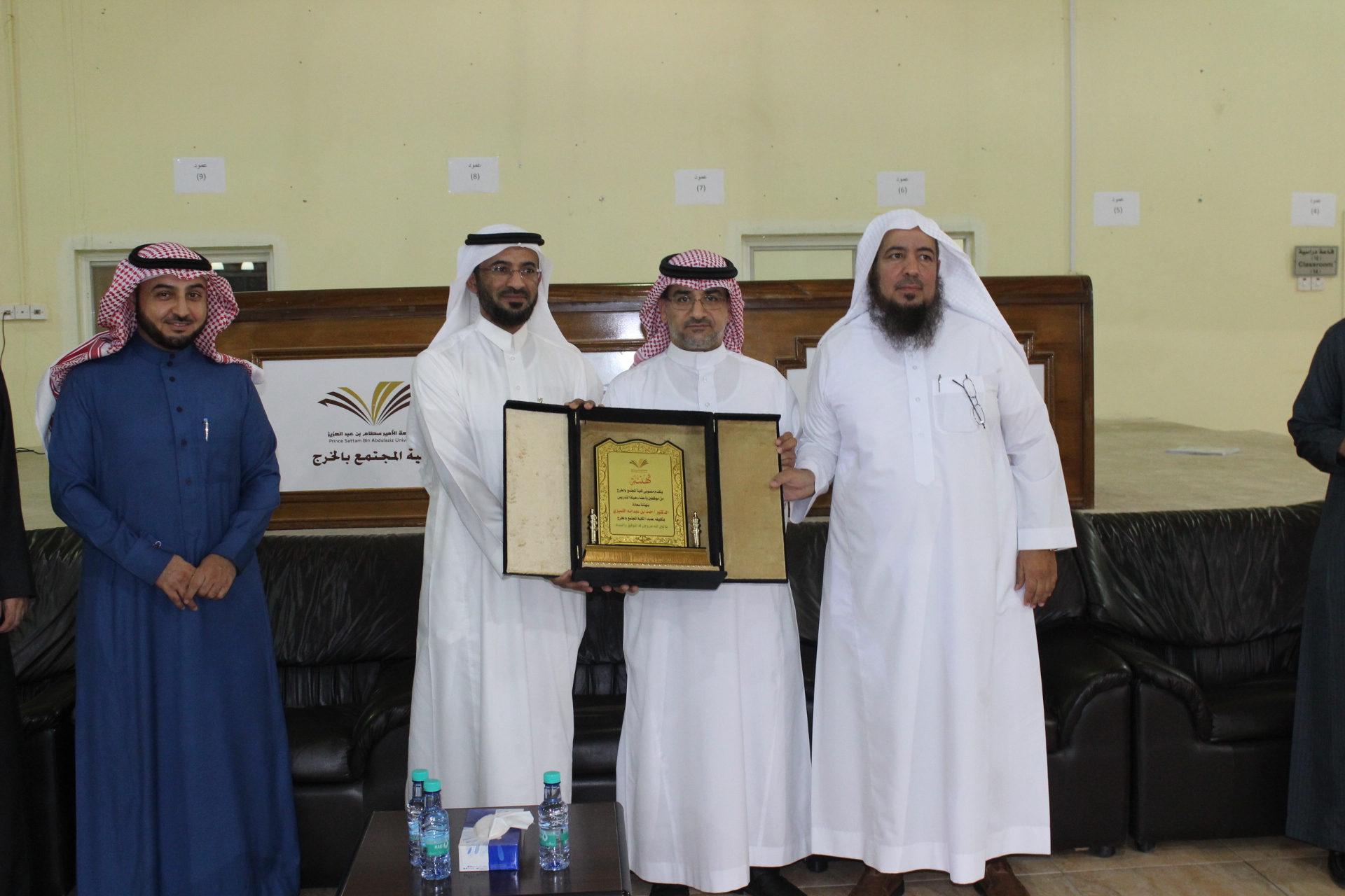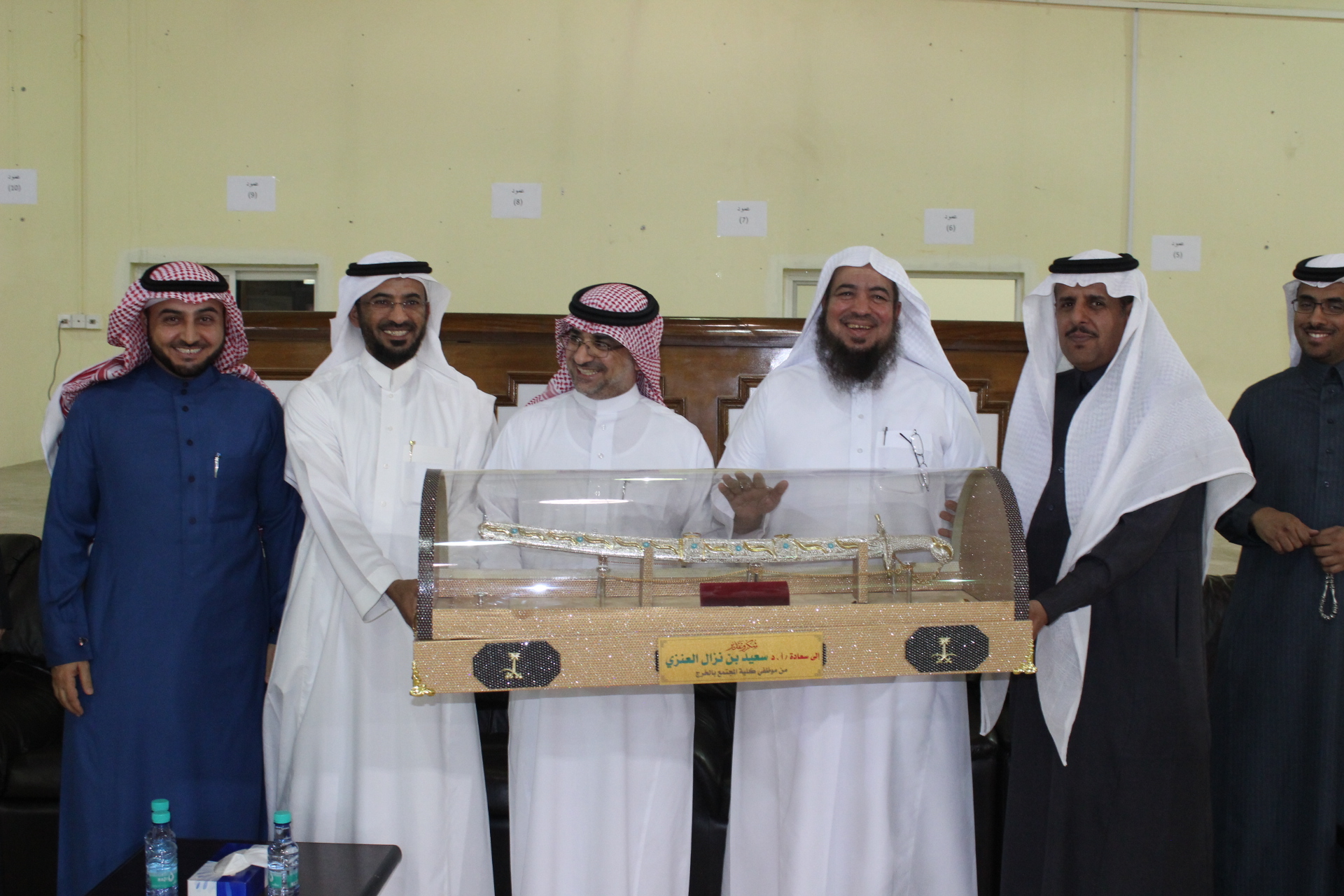 وفي لمسة وفاء من منسوبي كلية المجتمع بالخرج احتفلت الكلية بتكريم عميدها السابق الأستاذ الدكتور/ سعيد بن نزال العنزي لإنتهاء فترة عمادته للكلية، وعن دوره الملموس في تطوير الكلية خلال فترة عمله. برعاية سعادة وكيل الجامعة للشؤون التعليمة والأكاديمية الدكتور/ عبدالرحمن الخضيري وقد حضر الحفل العديد من العمداء بالجامعة ومنسوبي الكلية من أعضاء هيئة التدريس والموظفين. وقد أستهل الحفل بكلمة لسعادة عميد الكلية الدكتور/ حمد بن عبدالله القميزي عبره فيها عن شكره لسعادة وكيل الجامعة وعمداء الكلية لحضور هذا الحفل وأكد على أن الكلية سوف تشهد خلال الفترة القادمة العديد من الإنجازات في مجال تطوير قدرات أعضاء هيئة التدريس على استخدام التقنية الحديثة من أجل تحسين جودة البيئة التعليمة.