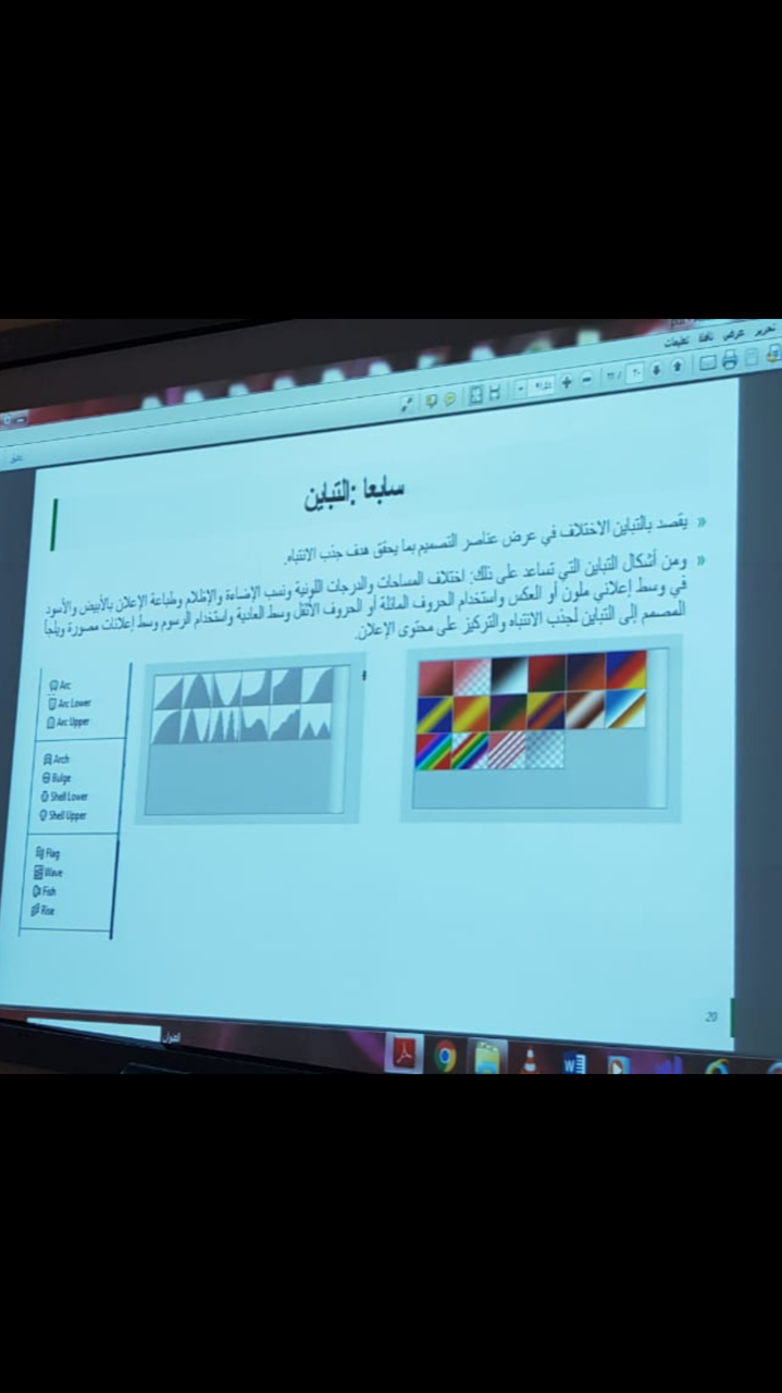 تحت رعاية سعادة وكيلة كلية المجتمع الدكتورة/ أمينة بنت عبدالرحمن المشحن، وامتداداً لفعاليات برنامج التدريبي الرمضاني الذي يعقد في كلية المجتمع بالخرج تم إقامة دورة تدريبية تحت عنوان "اساسيات التصميم الاحترافي " وذلك يوم الاربعاء الموافق 17/9/1440هـ . من تقديم الأستاذة/ ناهد عصري أبوزيد.