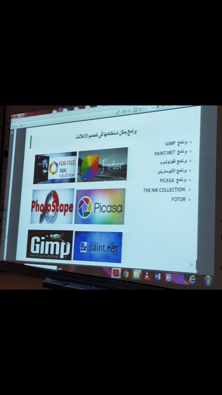 وفي نهاية الدورة التدريبية دار نقاش بين الأستاذة ناهد ابوزيد والحضور عن محاور الدورة واجابت عن بعض الأسئلة المتعلقة بالدورة التدريبية كما اعربت الأستاذة ناهد ان هذه الدور سوف تتبعها بإذن الله دورات لاحقة للتعرف اكثر على برامج التصميم المختلفة وكيفية استخدامها .