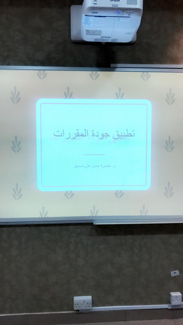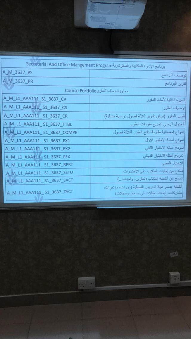 وقد تناولت الدكتورة بالتفصيل شرح طريقة انشاء ملفات المقررات الخاص بالجودة وآلية ذلك وأهم المستندات التي يجب أن تكون متوفرة في الملف وطريقة حفظ الملفات وعرضها .