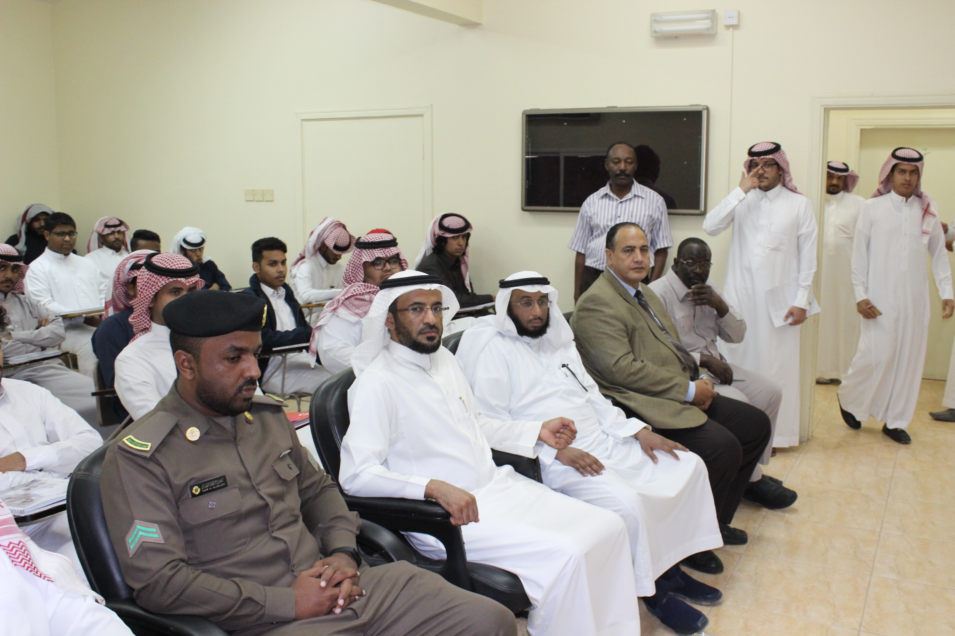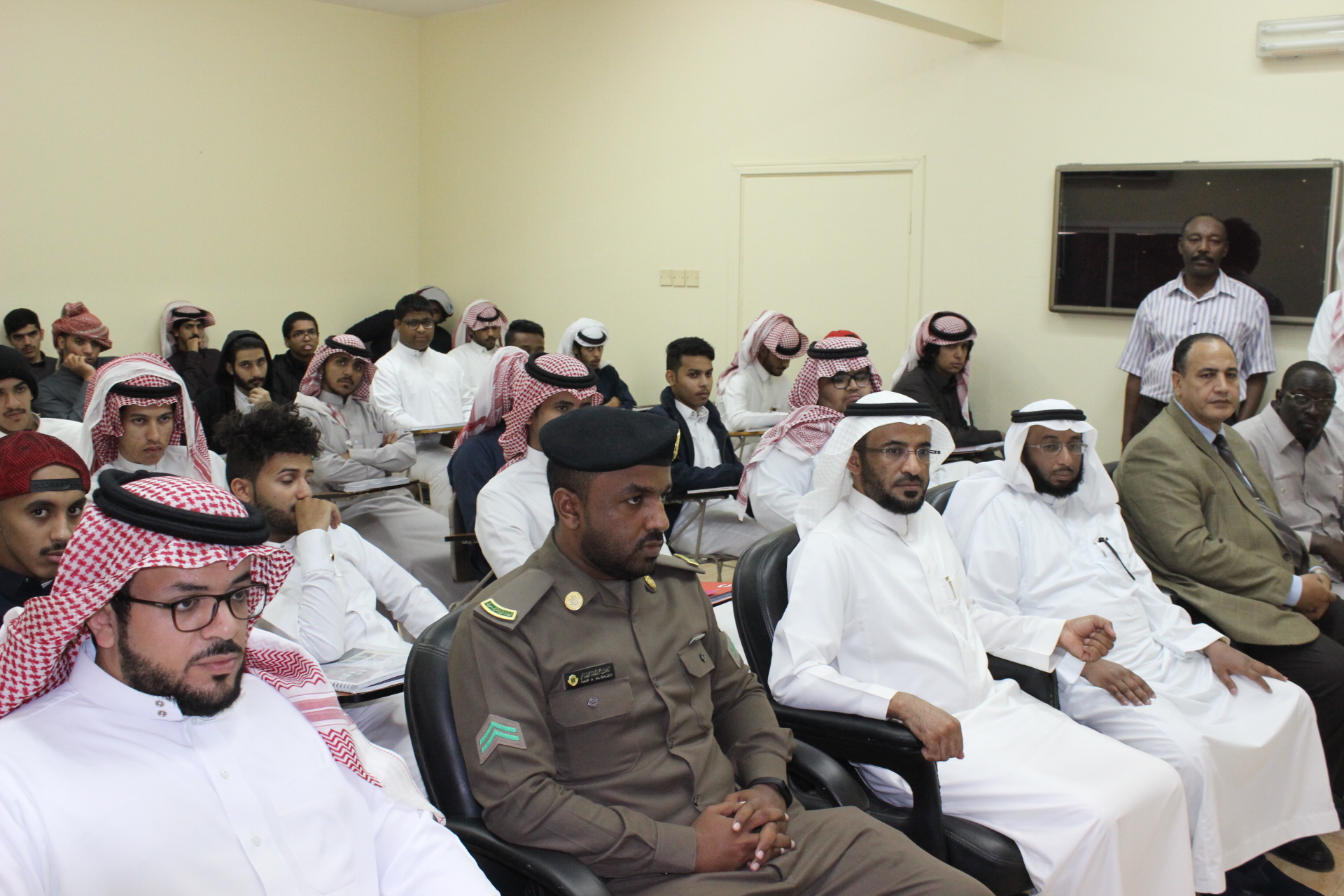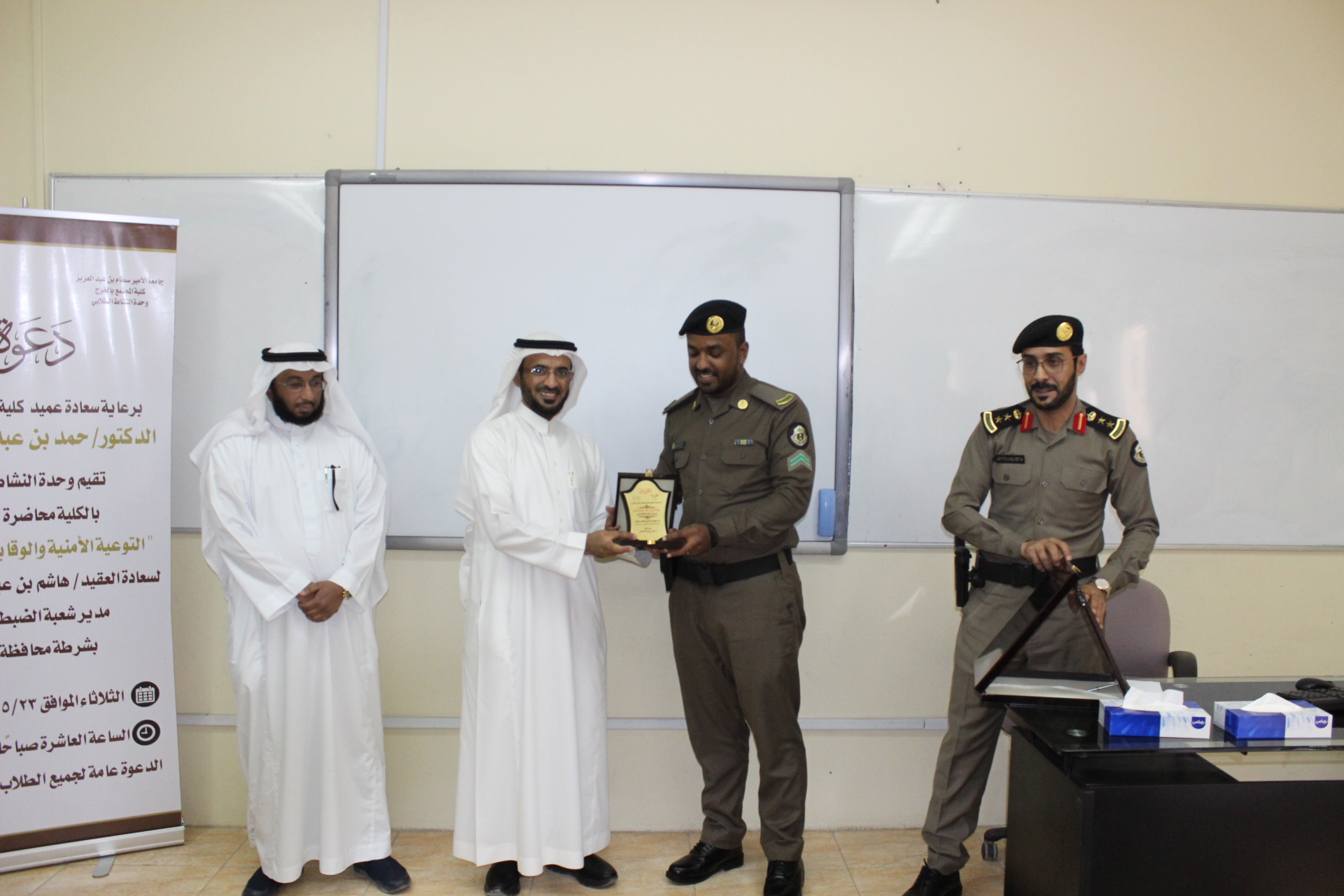حرصًا من كلية المجتمع بالخرج على نشر الوعي الأمني لدى طلابها ومنسوبيها نظمت وحدة النشاط الطلابي لقاًء بعنوان" التوعية الأمنية والوقاية من الجريمة" وذلك يوم الثلاثاء الموافق 23/5/1440هـ قدمها سعادة العقيد/ هاشم بن عبدالعزيز التميمي مدير شعبة الضبط الجنائي بشرطة محافظة الخرج وقد حضر سعادة عميد الكلية الدكتور/ حمد بن عبدالله القميزي، وسعادة وكيل الكلية وعدد كبير من الطلاب ومنسوبي الكلية. وقد تناولت اللقاء عدة موضوعات من أهمها التوعية الأمنية عن جرائم الاحتيال حيث أشارت إلى ضرورة تجنب الاشخاص الذين يمارسون عملهم بدون ترخيص رسمي، والانتباه إلى الاشخاص المتواجدين قرب أجهزة الصراف الآلي ATM ، واحترام القانون في كل التصرفات ، وعدم شراء أى سلعة من اشخاص مجهولة الهوية. كما تناولت تعريف الجريمة الالكترونية بأنها أى عمل اجرامي يستخدم الحاسب الآلي أو شبكة المعلومات الدولية في ارتكابه كأداة رئيسية، كما تعرف بأنها اختراق للبيانات بصورة غير شرعية، وتتعد أنواع الجريمة الالكترونية لتشمل القرصنة او الاختراقات الالكترونية والسب والتشهير عبر الانترنت وتزوير البطاقات الائتمانية وبالإضافة إلى ذلك أشار سعادة العقيد/ هاشم بن عبدالعزيز التميمي إلى طرق الوقاية من الجريمة الالكترونية والتي من أهمها عدم وضع صور شخصية على مواقع التواصل الاجتماعي تواخي الحذر عند تحميل أى معلومات على هذه المواقع عدم قبول أى إضافات من أشخاص مجهولة الهوية، الحذر من الرسائل الوهمية التي قد تصل عبر البريد الإلكتروني وعدم الرد على هذه الرسائل ، وعدم نشر المقاطع المسيئة عبر وسائل التواصل الاجتماعي لتجنب الوقوع تحت طائلة القانون والحفاظ على أمن واستقرار الوطن. وفي نهاية اللقاء تقدم سعادة الدكتور/ حمد بن عبدالله القميزي بخالص الشكر إلى سعادة العقيد / هاشم بن عبدالعزيز التميمي على ما قدمه من إرشادات أمنية مفيدة لطلاب ومنسوبي الكلية وأكد سعادته على حرص الكلية على إقامة مثل هذه الفعاليات التي من شأنها رفع الجانب التوعي لدى الطلاب ومنسوبي الكلية.