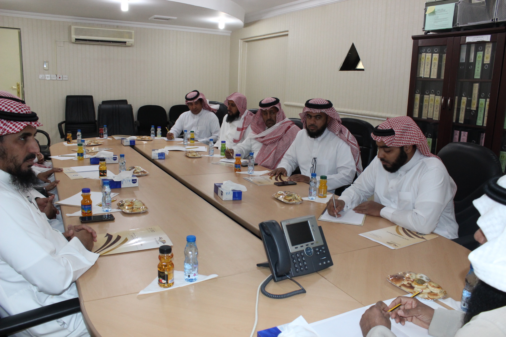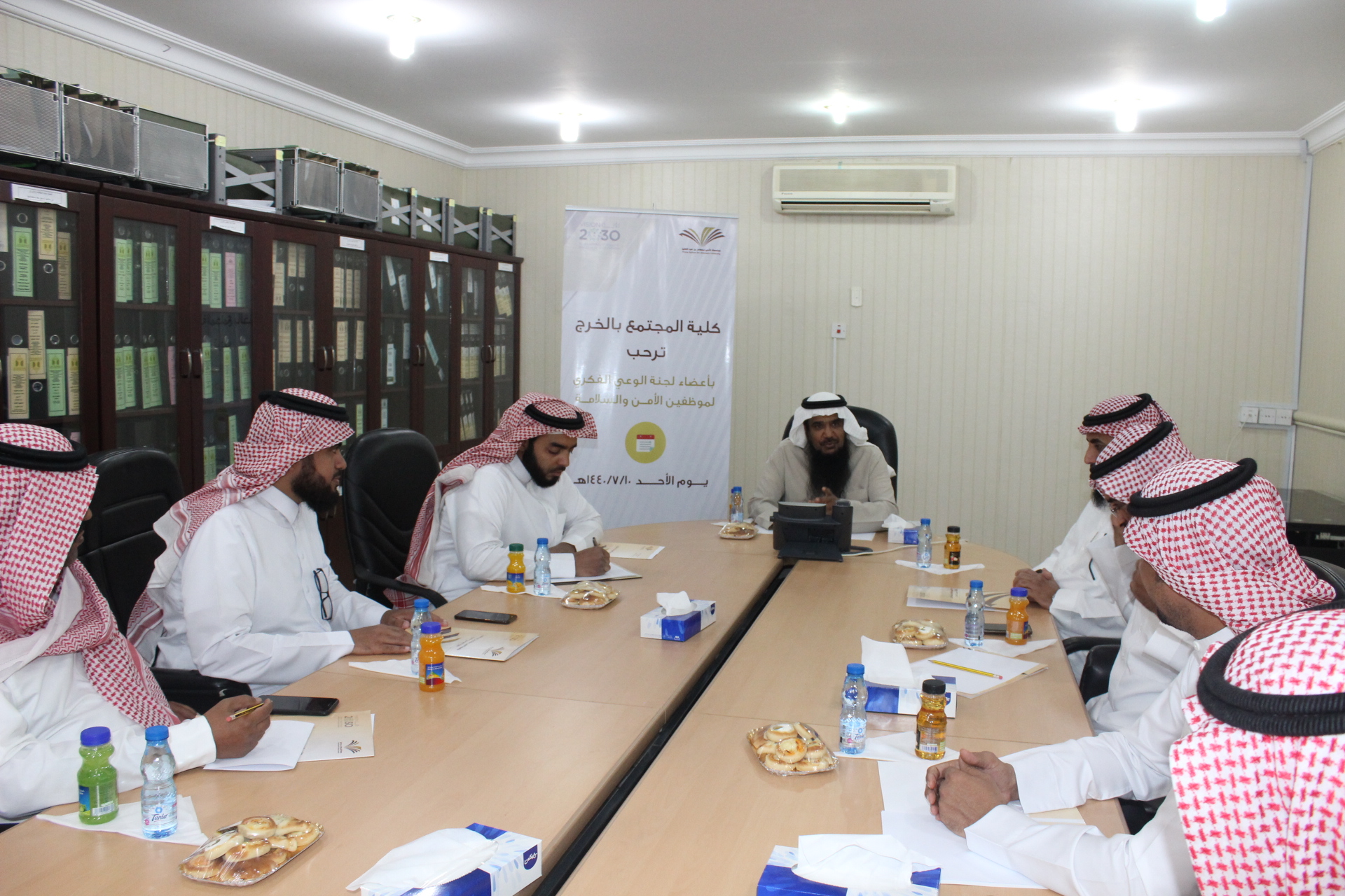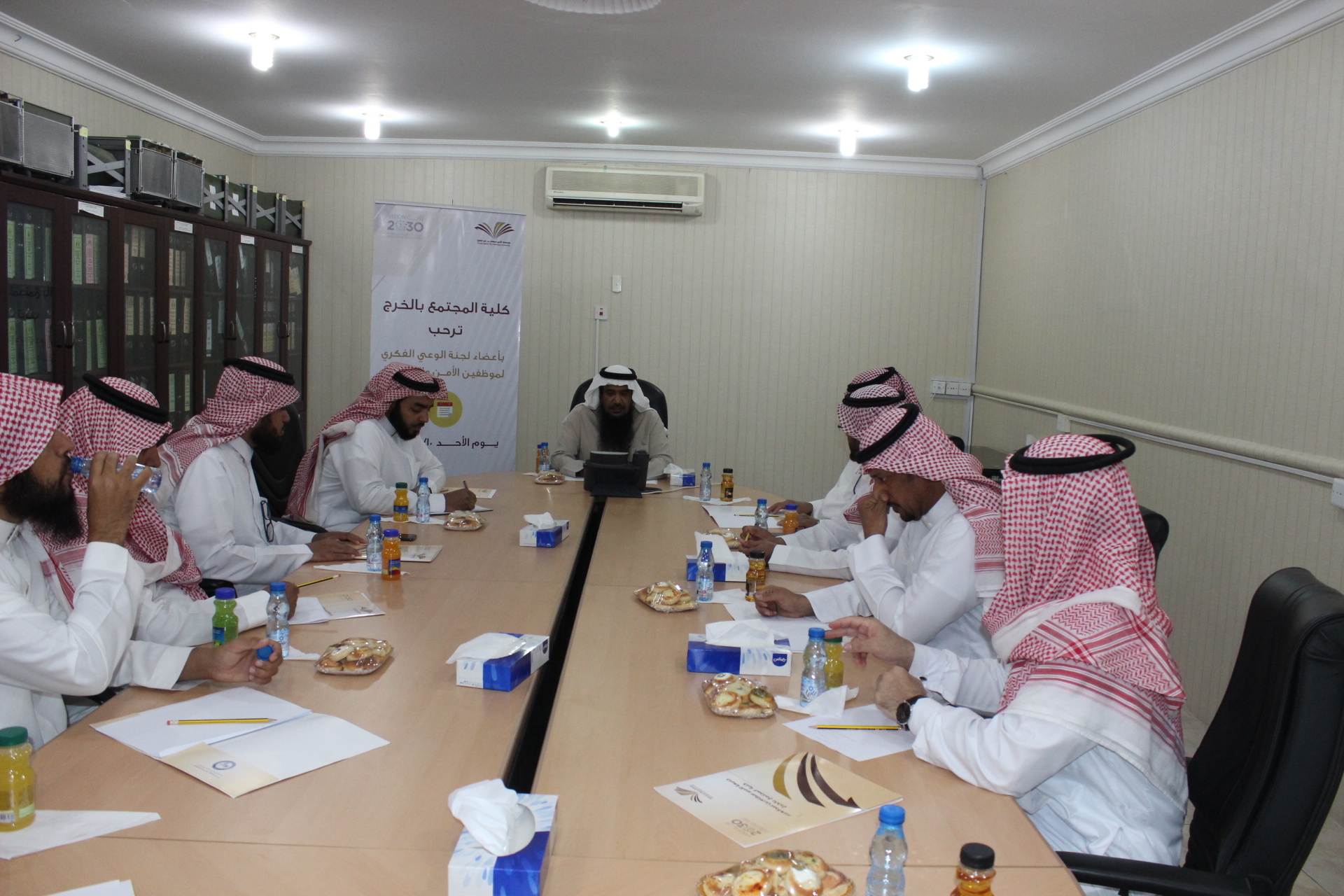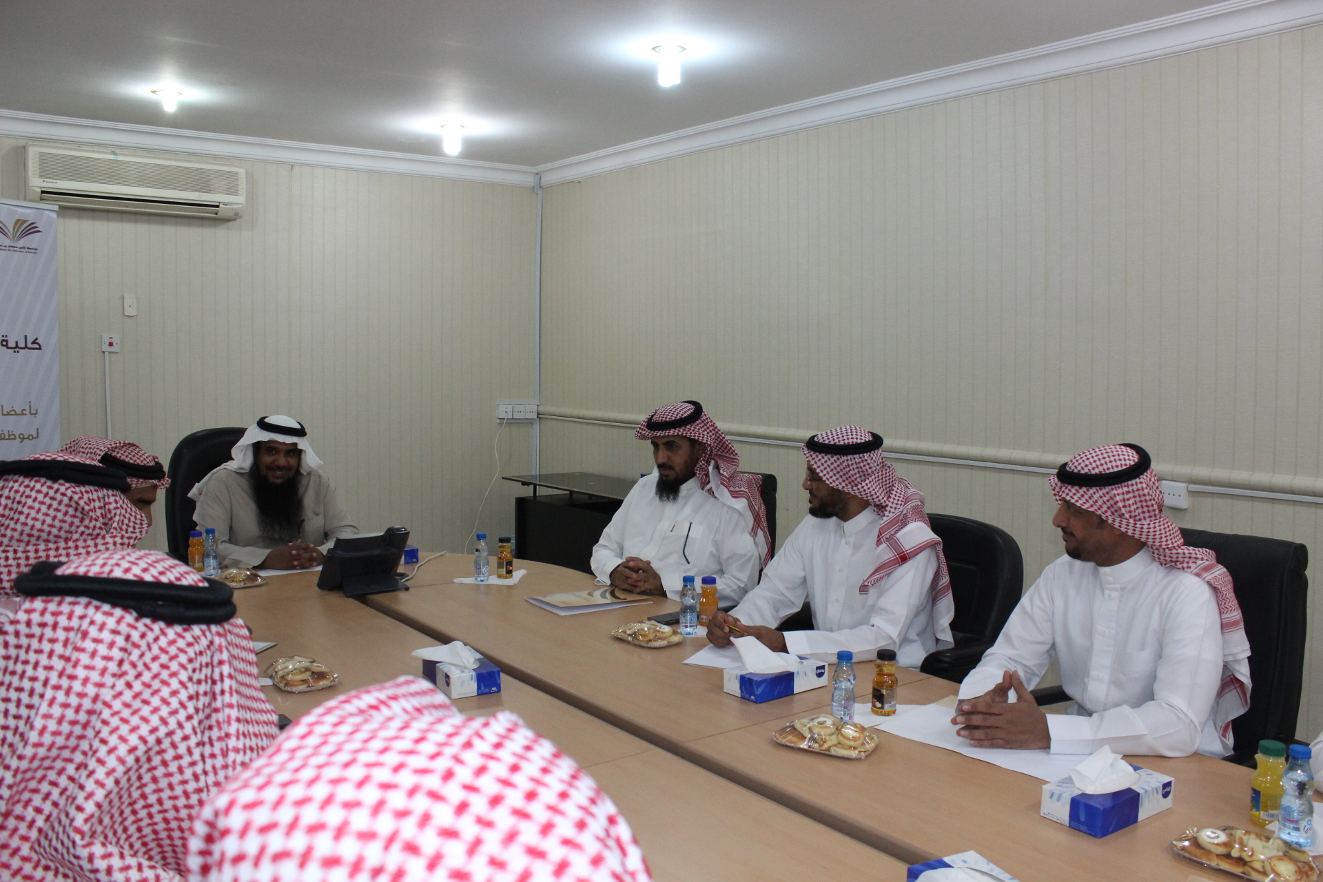 بعد ذلك بدء اجتماع اللجنة في قاعة اجتماعات الكلية، حيث بدء الاجتماع بكلمة لرئيس اللجنة الدكتور خالد الدبيان، ثم عرضت الموضوعات المطروحة على جدول الأعمال.