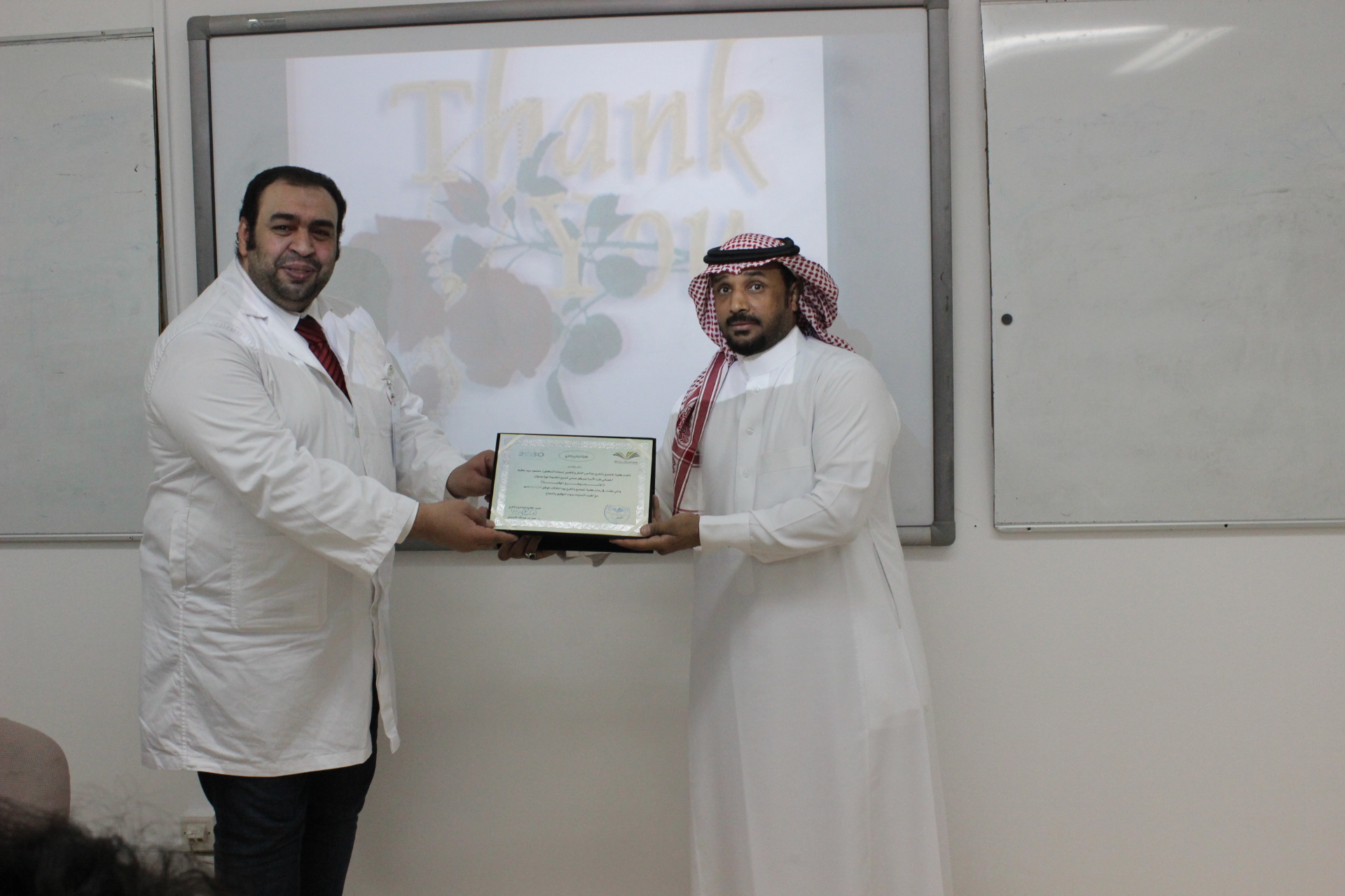 في إطار كلية المجتمع بالخرج بأهمية نشر الوعي الصحي بين طلاب الكلية وتفعيل الشراكة المجتمعية مع مؤسسات المجتمع المحلي نظمت وحدة النشاط الطلابي بالكلية بالتعاون مع مركز صحي السيح بالخرج مبادرة بعنوان" لا للتسمم الغذائي" ،حيث قام سعادة الدكتور/ محمود سيد عطية أخصائي طب الأسرة بمركز صحي السيح على هامش هذه المبادرة بتقديم محاضرة للطلاب بعنوان" بعنوان"التسمم الغذائي: الأسباب وطرق الوقاية" وذلك يوم الثلاثاء الموافق 11/1/1441هـ ، وقد جاءت هذه المحاضرة في إطار التوعية الصحية بمخاطر التسمم الغذائي والحد من إنتشاره.