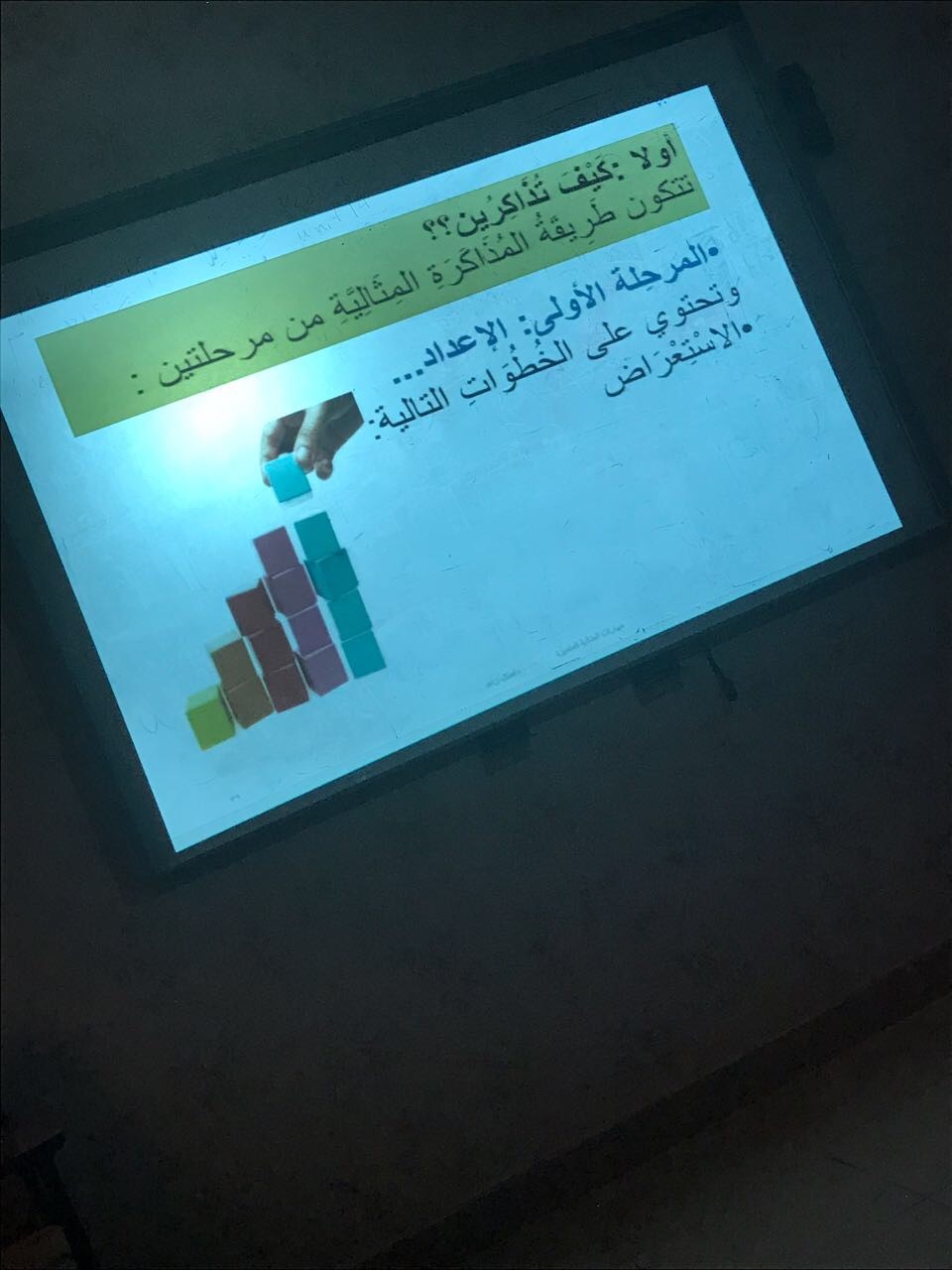 ثم بينت من خلال الورشة إحصائية تمت في أمريكا حول أفضل طريقة للكتابة في المحاضرات من أسوء شيء وهو عدم الكتابة إلى أفضل شيء وهو الاعتماد على الخريطة الذهنية وقد تخللها مناقشات ومداخلات من الطالبات والحضور حول طريقة الدراسة وكيف تكوني طالبة مجتهدة متميزة في جميع مجالات الحياة.وقد شهدت الورشة حضور عدد كبير من الطالبات .