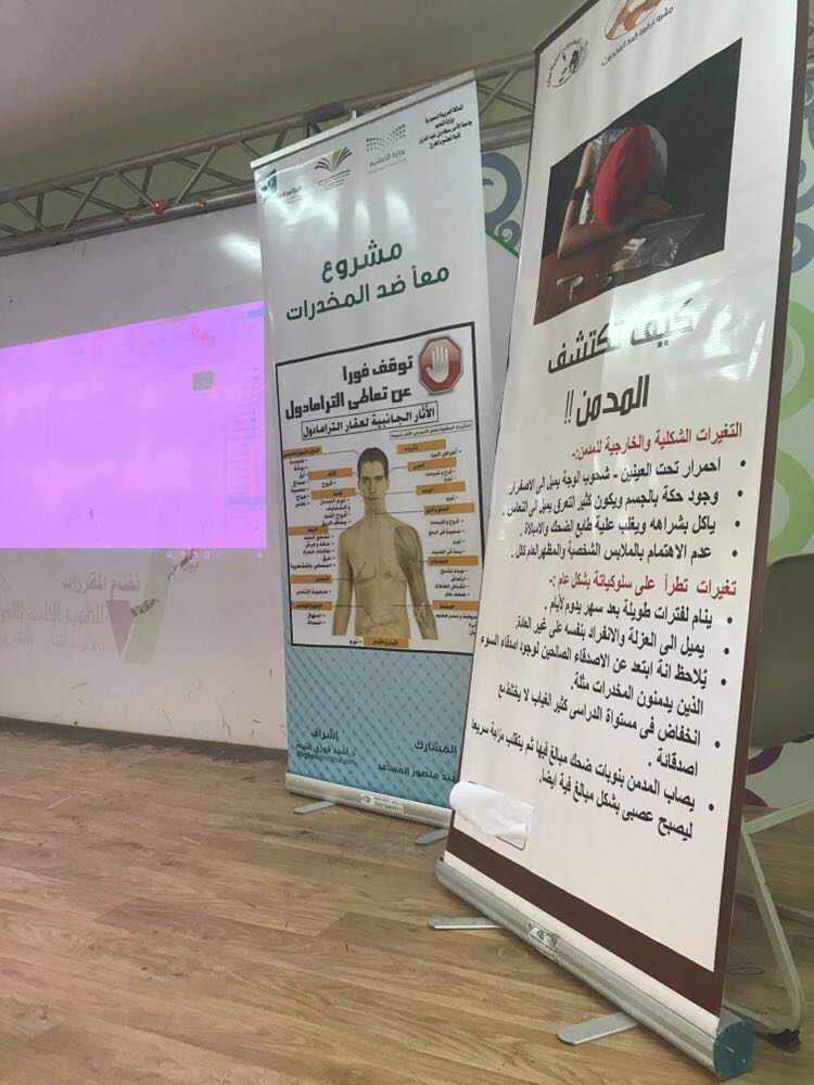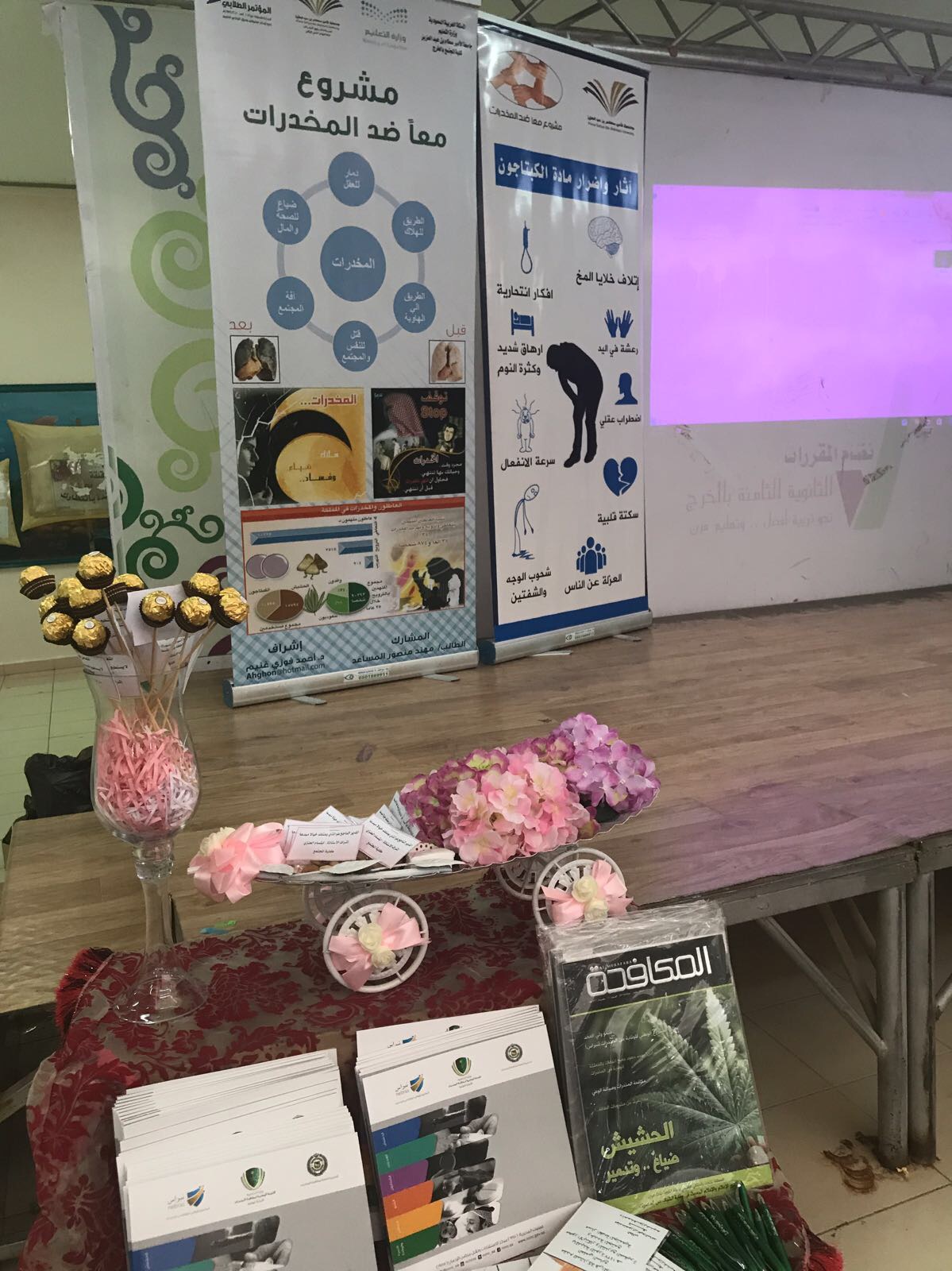 برعاية عميد الكلية الدكتور / سعيد بن نزال العنزي والدكتورة / أمينة عبدالرحمن المشحن وكيلة كلية المجتمع نظمت الكلية زيارة إلى المدرسة الثانوية الثامنة لتفعيل حملة " معاً ضد المخدرات " وبمشاركة المستوى الأول من تخصص إدارة الأعمال بالكلية.