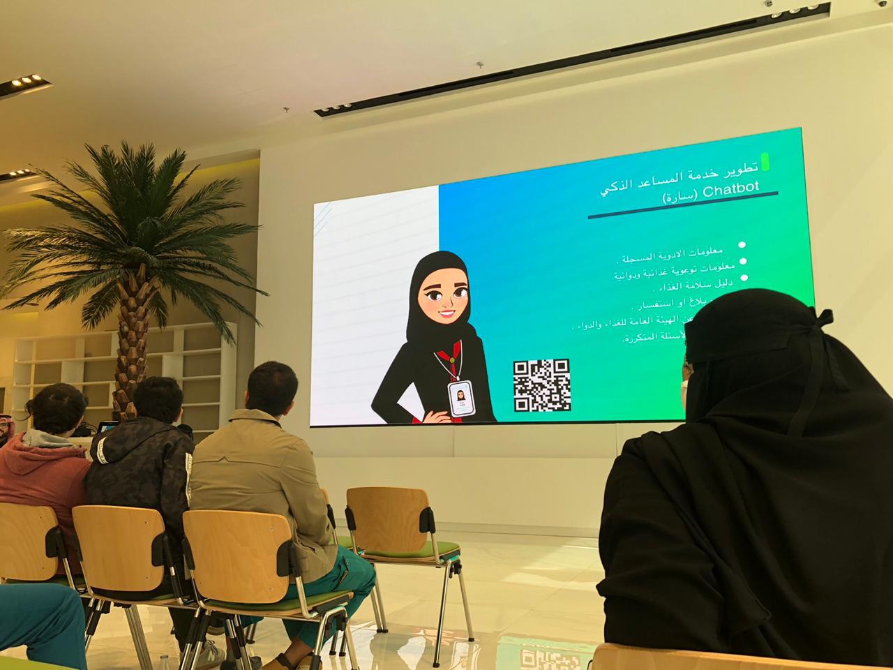 بدأ الأستاذ/ عبد العزيز الفاخري الزيارة بالترحيب منوّهًا بأهمية تلك الزيارات في صقل مهارات الطلاب والطالبات، ثم استعرض شرحاً مبسّطاً عن الهيئة و دورها في المجتمع، وفي الحفاظ على صحة وجودة الخدمة لعملائها من المواطنين و المهتمين، وما تمتلكه الهيئة من أجهزة و خدمات متقدمة. تلا ذلك، عرض التطبيقات العامة للهيئة مثل ؛ تطبيق الهيئة ، طمني ، سارة المساعده الذكية.... وغيرها.
