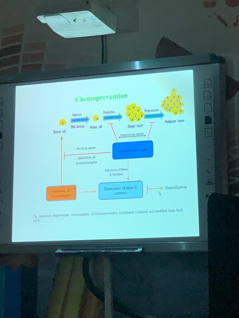 وذلك في يوم الاثنين الموافق ١٤/ 3/ ١٤٤١هـ الموافق ١١/ ١١/ ٢٠١٩ م ، قدمتها الدكتورة سمية رشيد الأستاذ المساعد بقسم علم الأدوية والسموم والتي تطرقت فيها عن دور الكريسين في تثبيط الآفة السرطانية في الكلى من خلال تنظيم فرط الانتشار والتهيج و موت الخلايا المبرمج في المرحلة قبل السريرية . وقد أثريت المحاضرة بمداخلات واستفسارات هادفة من قبل الحضور.