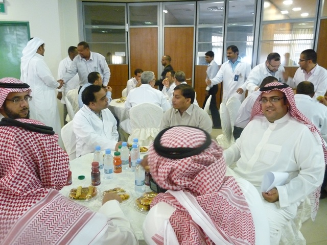 تحت رعاية عميد كلية الصيدلة الأستاذ الدكتور/ خالد بن محمد الخرفي أقيمت حفل معايدة بالكلية بحضور وكيل الكلية الدكتور/ عبدالله بن علي القحطاني ومدير إدارة الكلية الأستاذ/ناصر بن عبدالله الموسى وكذلك منسوبي الكلية من أعضاء هيئة التدريس وموظفي الكلية، وقد ألقى عميد الكلية كلمة ترحيب وتهنئة بعيد الأضحى المبارك أعاده الله علينا باليمن والخير والبركات