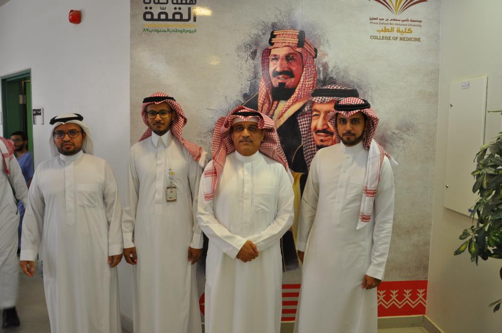 برعاية سعادة عميد كلية الطب الدكتور عبد الرحمن الذياب، أقامت وحدة الأنشطة الطلابية بكلية الطب جامعة الأمير سطام بن عبد العزيز حفلا بمناسبة ذكرى اليوم الوطني التاسع والثمانين، اليوم الأربعاء 3 صفر 1441هـ الموافق 2 أكتوبر 2019م بمبنى الكلية بالخرج؛ وذلك بحضور سعادة العميد ووكلاء الكلية ورؤساء الأقسام وأعضاء هيئة التدريس والموظفين وجمع من الطلاب.