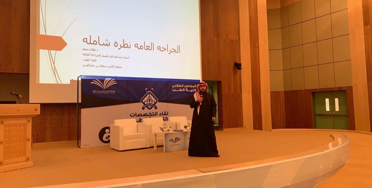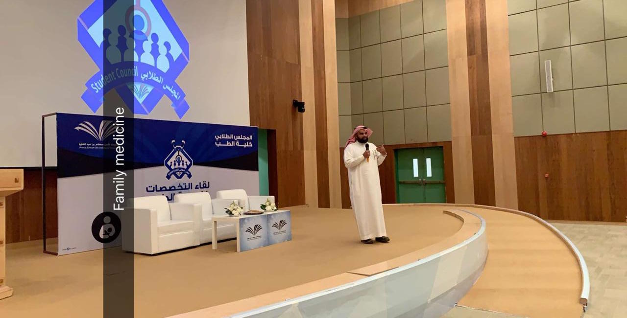انطلاقا من رؤية وأهداف الجامعة لتحقيق الطموحات المثالية للطلاب، أقام المجلس الطلابي بكلية الطب ندوة تحت عنوان: "لقاء التخصصات" بهدف تعريف طلاب الكلية بالتخصصات الطبية المختلفة العامة والدقيقة. تحدث في الندوة عدد من الأطباء الاختصاصيين في عدة تخصصات طبية تناولوا في حديثهم مزايا ومتطلبات كل تخصص وحاجة المجتمع لها في ضوء رؤية 2030. كما تم فيها الإجابة على أسئلة المستمعين. وقد نالت الندوة استحسان الحاضرين.