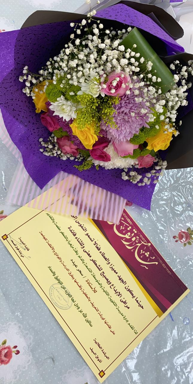 في ختام الزيارة قدمت قائدة المدرسة شكرها للدكتورة سحر لتعاونها المثمر وجهودها المبذولة في نجاح الورشة.