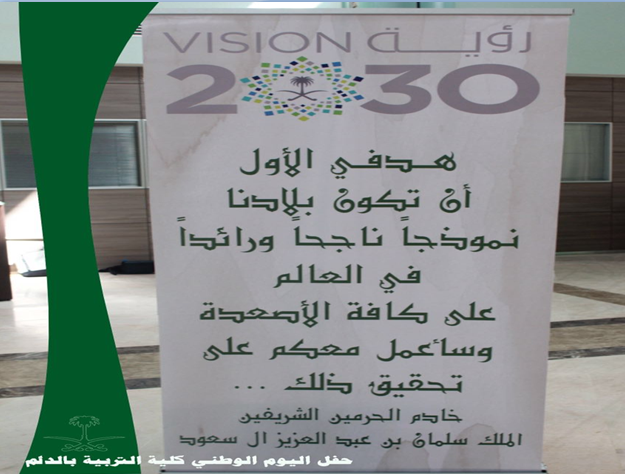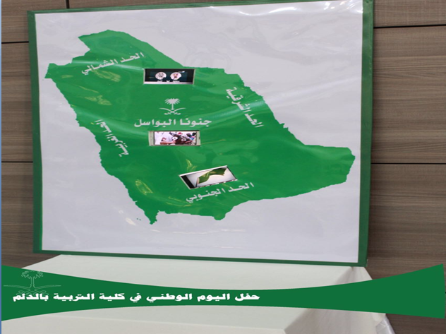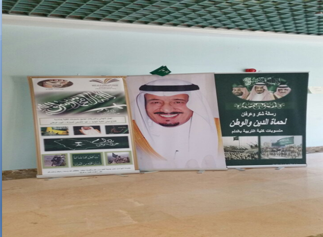 تحت رعاية عميدة الكلية د.مليحة القحطاني نظمت وحدة العمل الطلابي بالتعاون مع وحدة العلاقات العامة والإعلام احتفالاً بالذكرى السادسة و الثمانين للمملكة العربية السعودية تحت شعار «رؤية.. وطن» و ذلك يوم الاثنين الموافق 25/12/1437هـ الساعة العاشرة والنصف صباحاً بالبهو الداخلي بالكلية .