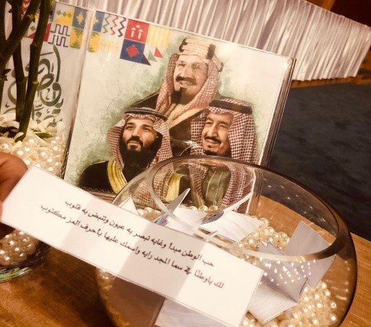 عام جديد يضاف إلى التاريخ المجيد للوطن، وذكرى جديدة لتوحيد هذا الكيان العظيم على يد المؤسس رحمه الله ورجاله المخلصين وصفحة مضيئة تضاف إلى سجل حافل بالإنجاز والخير والسلام.. وبرعاية كريمة من عميدة كلية التربية بالدلم الدكتورة. مليحة محمد القحطاني، نفذت وحدة العمل الطلابي ممثلة بشعبة الأنشطة الثقافية والاجتماعية بالكلية تحت اشراف أ.نوره العويمر عدداً من الأنشطة الثقافية بهدف تعزيز روح الانتماء للوطن والحس الوطني والاجتماعي لدى الطالبات واثراء ثقافتهن الوطنية.
