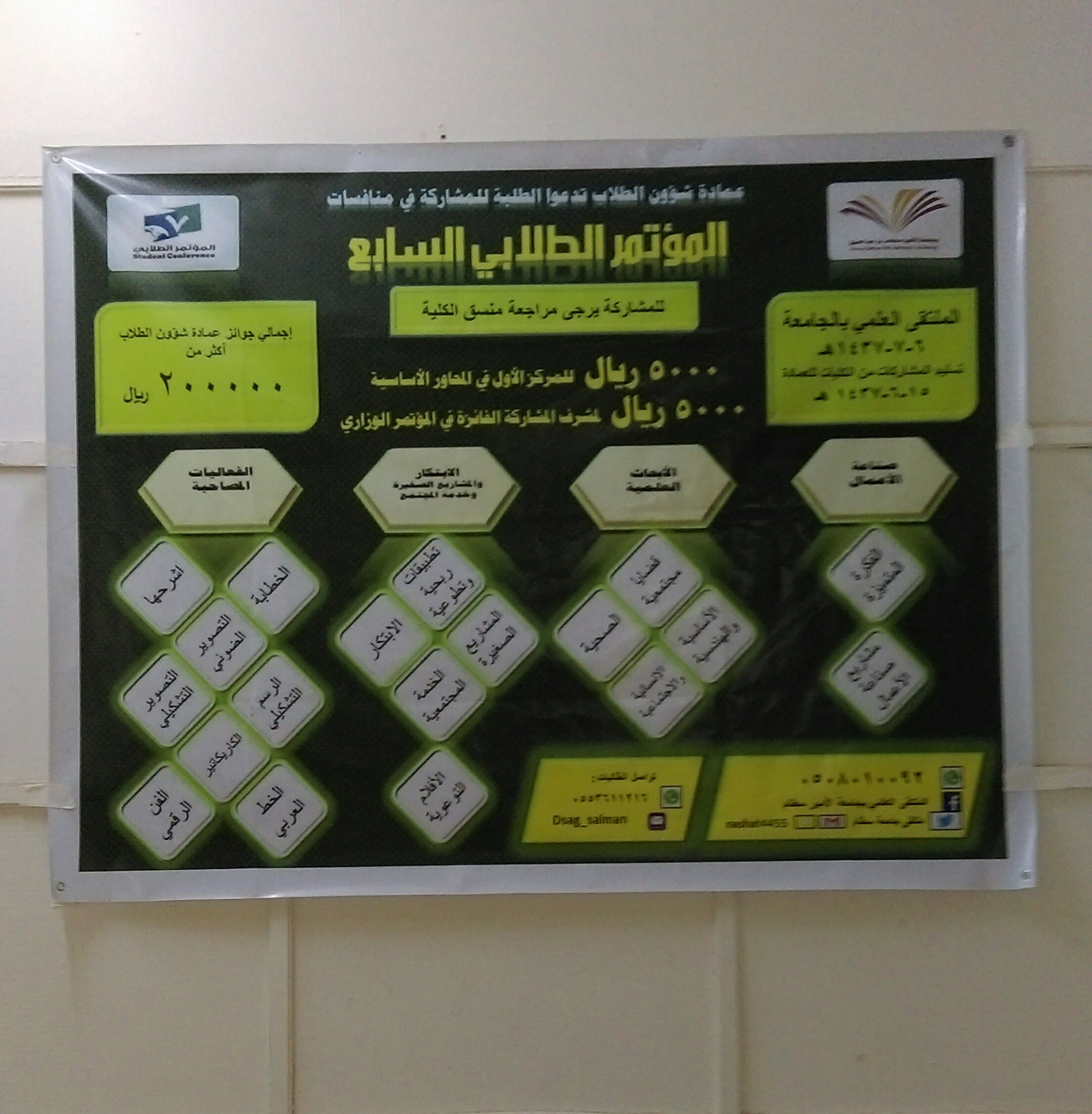 نظمت منسقة المؤتمر العلمي السابع بكلية التربية بالدلم أ/ مها الطعيس برنامج تحكيم المحاور المشاركة في المؤتمر العلمي السابع بالكلية ، وقد كانت لجان التحكيم من أعضاء هيئة التدريس المتخصصات داخل الكلية ، حيث تم يوم الأحد 11/6 تسليم أعمال الطالبات المشاركات، وقد بدأت مرحلة التحكيم يوم الاثنين الموافق 12/6 بتحكيم محور الرسم التشكيلي والتصوير الضوئي ، أما يوم الثلاثاء 13/6 فقد تم تحكيم محور الإلقاء والخطابة اشرحها ، ويوم الأربعاء 14/6 حيث تم تحكيم عدة محاور منها محور البحث العلمي ، ومحور الابتكار، ومحور خدمة المجتمع ، ومحور ريادة الإعمال ، وتم في يومي الثلاثاء والأربعاء 13-14/6 تحكيم محور الخط العربي .