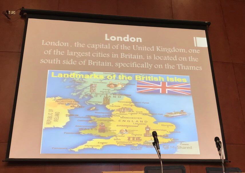 نظم قسم اللغة الانجليزية بالتعاون مع وحدة العمل الطلابي بكلية التربية بالدلم نشاطاً بعنوان " "The British Civilization تحت إشراف الأستاذة/ جهان بنعبيد – محاضر في قسم اللغة الإنجليزية ومنسقة النشاط في القسم-وبمشاركة الطالبات منيرة السلمان والجوهرة المنيع ورهف الهيف- وذلك يوم الاربعاء 18-7-1439 هـ في تمام الساعة 9 صباحا في مسرح الكلية. بهدف التعريف بالحضارة البريطانية و خصائصها وموقعها الجغرافي ومعالمها التاريخية والحياة المعاصرة فيها ونسبة المسلمين فيها والأماكن السياحية إضافة إلى بعض المأكولات المشهورة فيها.