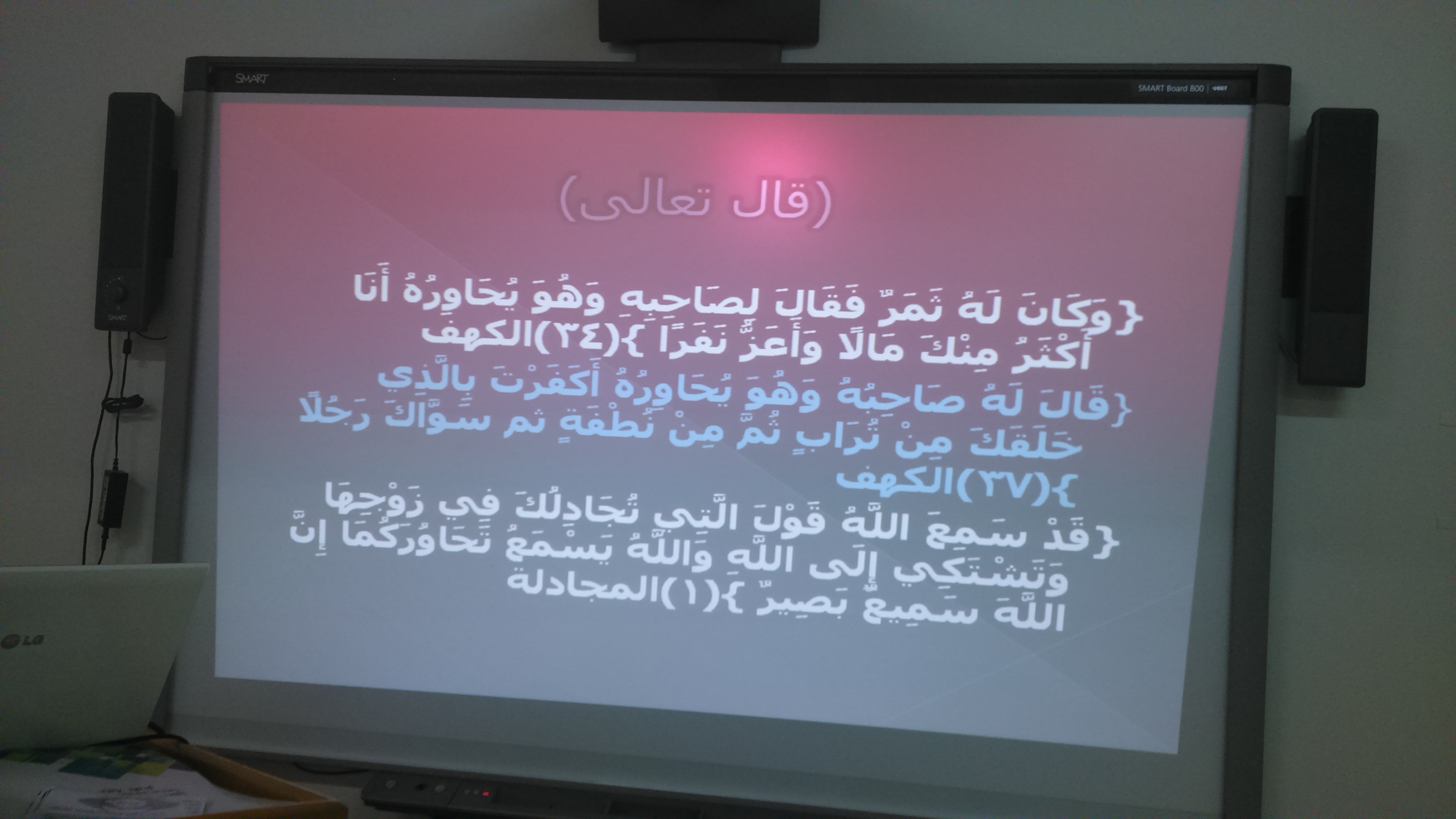 - (وَكَانَ لَهُ ثَمَرٌ فَقَالَ لِصَاحِبِهِ وَهُوَ يُحَاوِرُهُ أَنَا أَكْثَرُ مِنْكَ مَالاً وَأَعَزُّ نَفَرًا) [الكهف: 34]