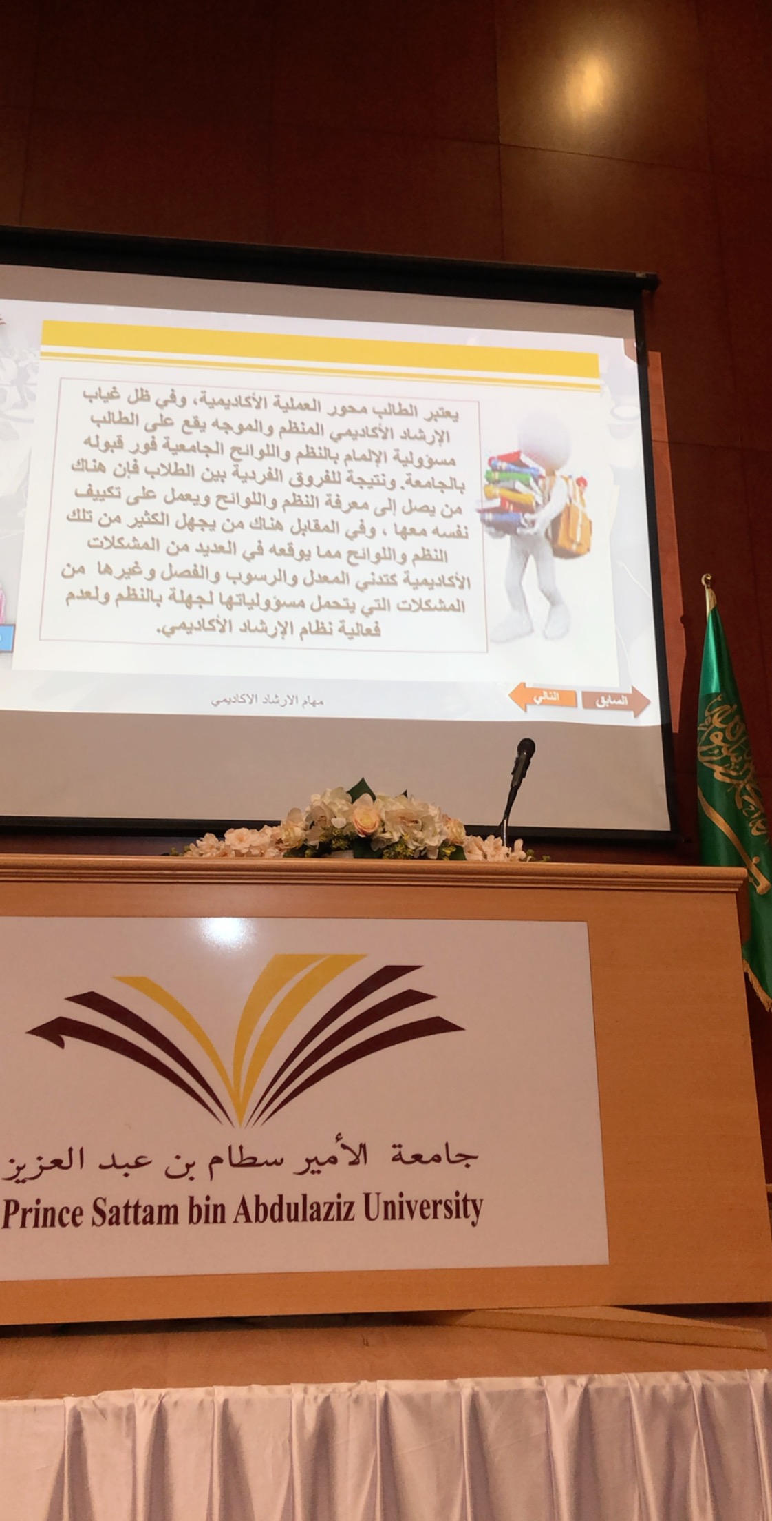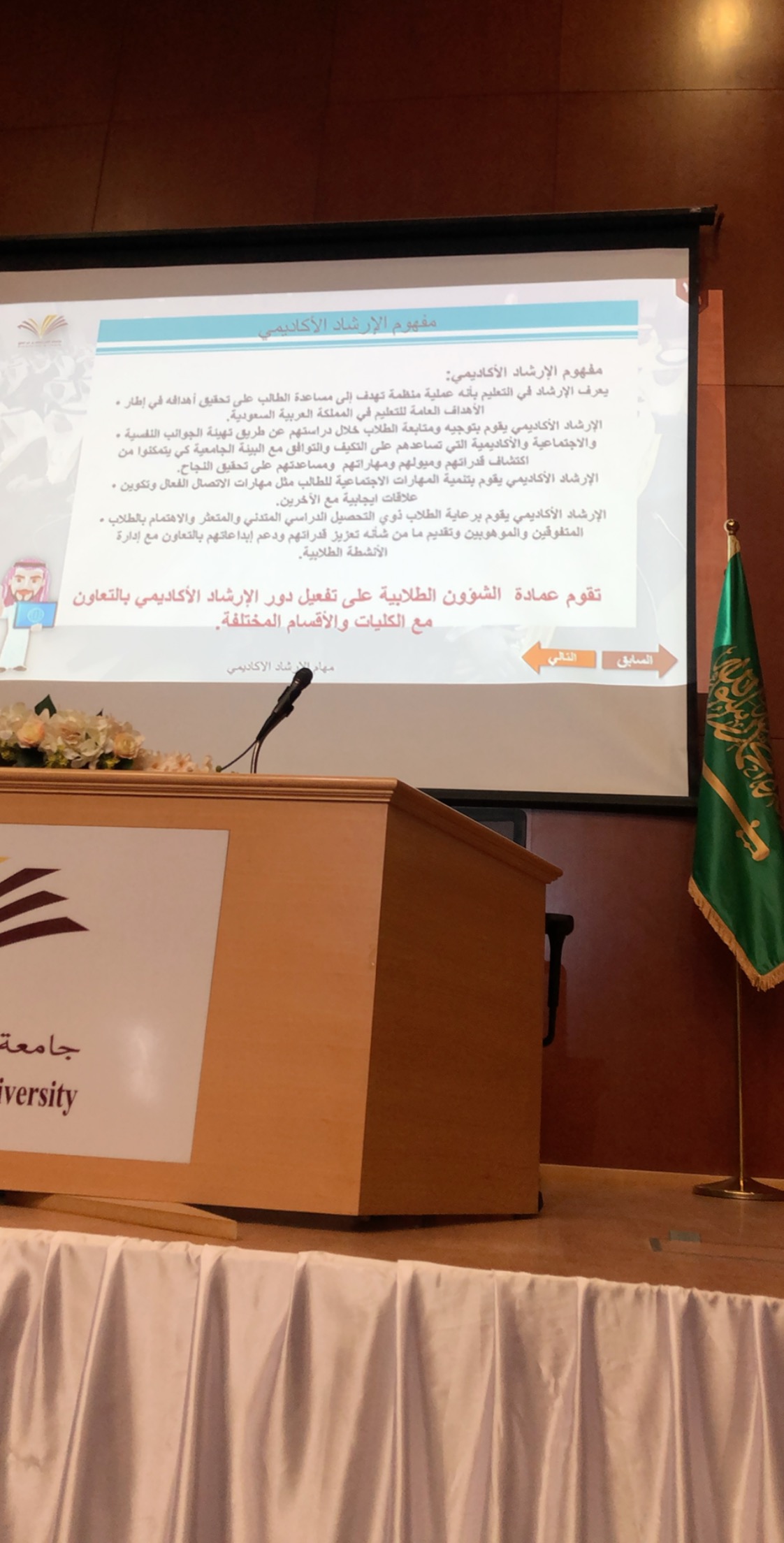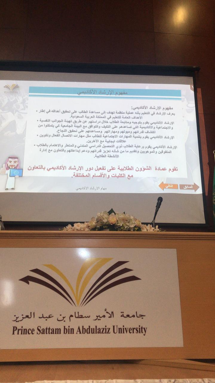 أقامت كلية التربية بالدلم وبرعاية عميدة الكلية الدكتورة/ مليحة بنت محمد القحطاني وإشراف وكيلة الشؤون التعليمية والاكاديمية بالكلية الدكتورة/ وداد بنت عبدالله شرعبي، لقاءا تعريفيا للطالبات المستجدات للفصل الدراسي الثاني من العام الجامعي 1440هـ-1441هـ تحت عنوان (أنتِ بأعيننا) على مدى ثلاثة أيام ابتداء من يوم الأثنين 2 جماد الاخر 1441هـ في مسرح الكلية، وبتنسيق وحدة العمل الطلابي تحت إشراف الأستاذة / هند ال محسن ووحدة الارشاد الاكاديمي تحت اشراف الدكتورة أمل الزين وبمشاركة وحدات ولجان الكلية حيث قدمت مشرفات كل من وحدة الارشاد النفسي ووحدة الارشاد الاكاديمي ووحدة العمل الطلابي ووحدة التعلم الالكتروني ووحدة وذوي الاحتياجات الخاصة ومشرفة المكتبة تعريفا بكل وحدة وما تقدمه من خدمات للطالبات.