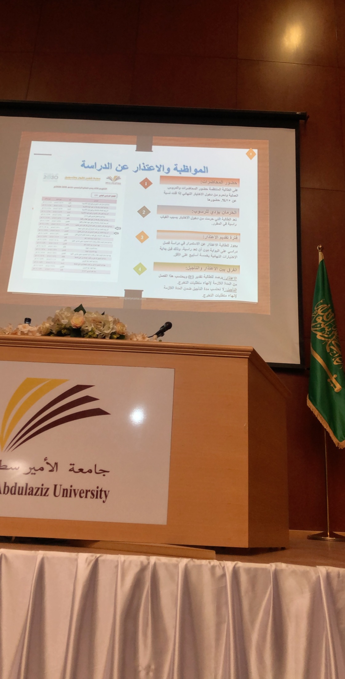 وفي اليوم الثالث للقاء قدمت الدكتورة ابتهال بنت عبدالعزيز المبرد لقاء بعنوان الالتزامات والحقوق الطلابية، ثم قدمت الدكتورة سحر عبدة تعريفًا بنظام الدراسة الجامعية واللائحة الاكاديمية للدراسة والاختبارات للجامعة.