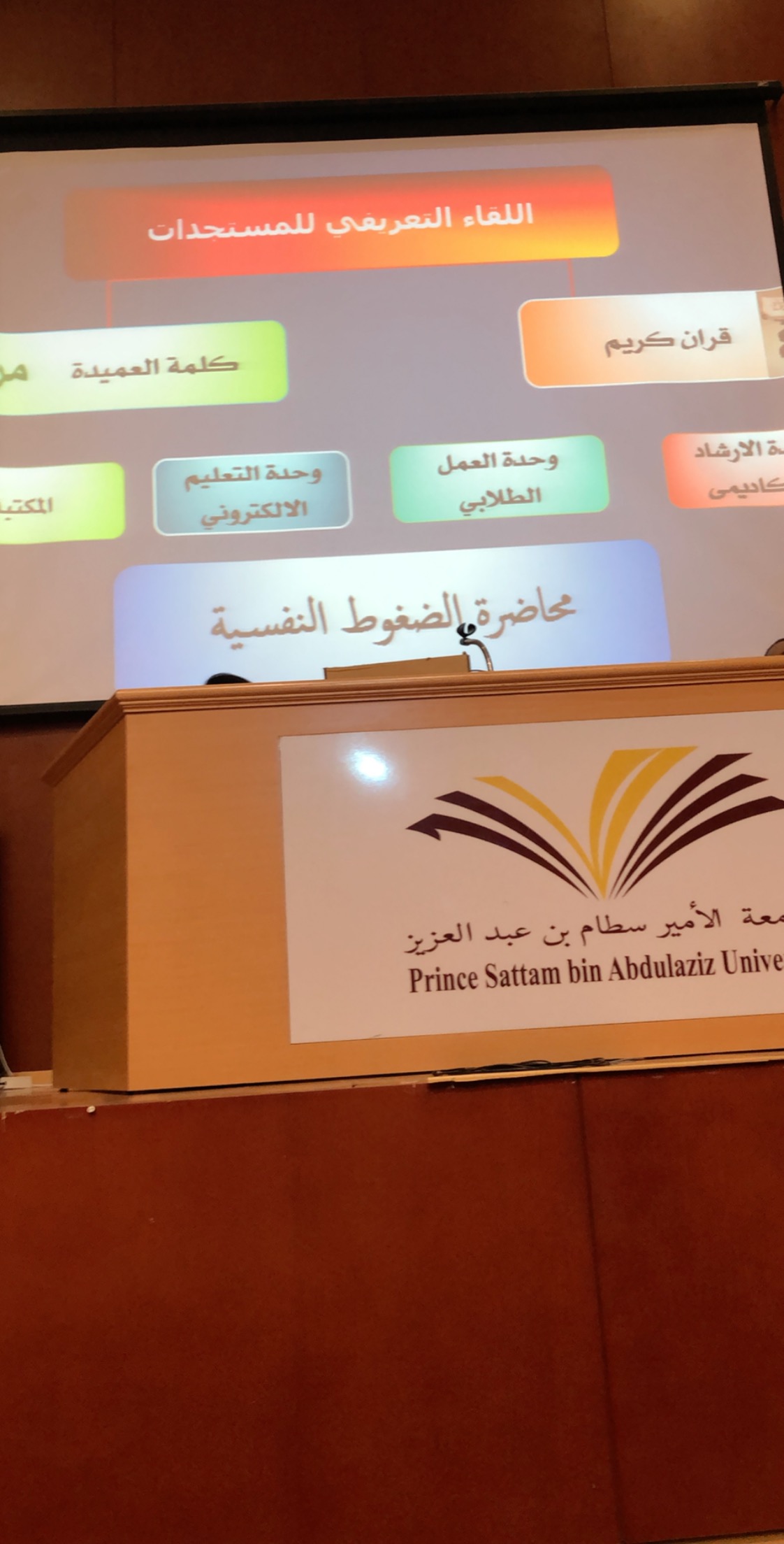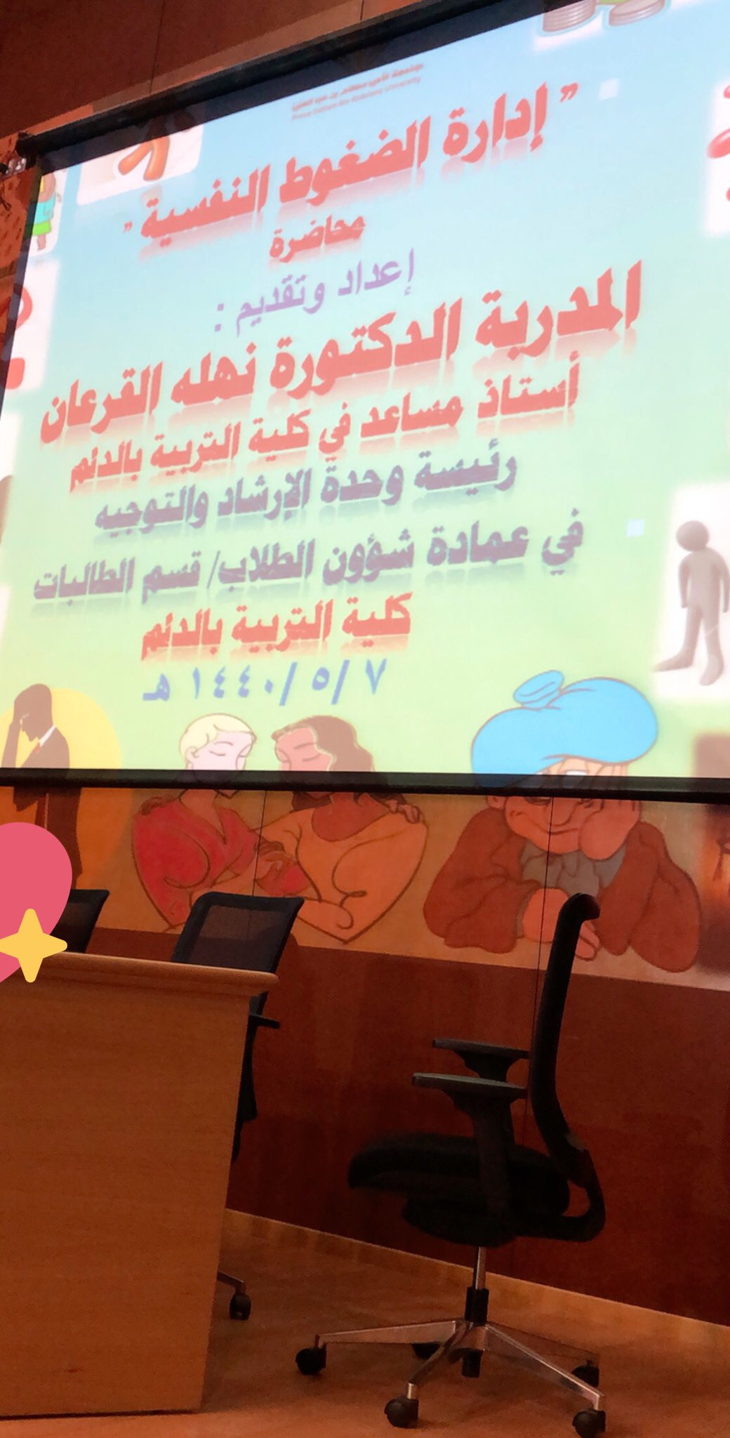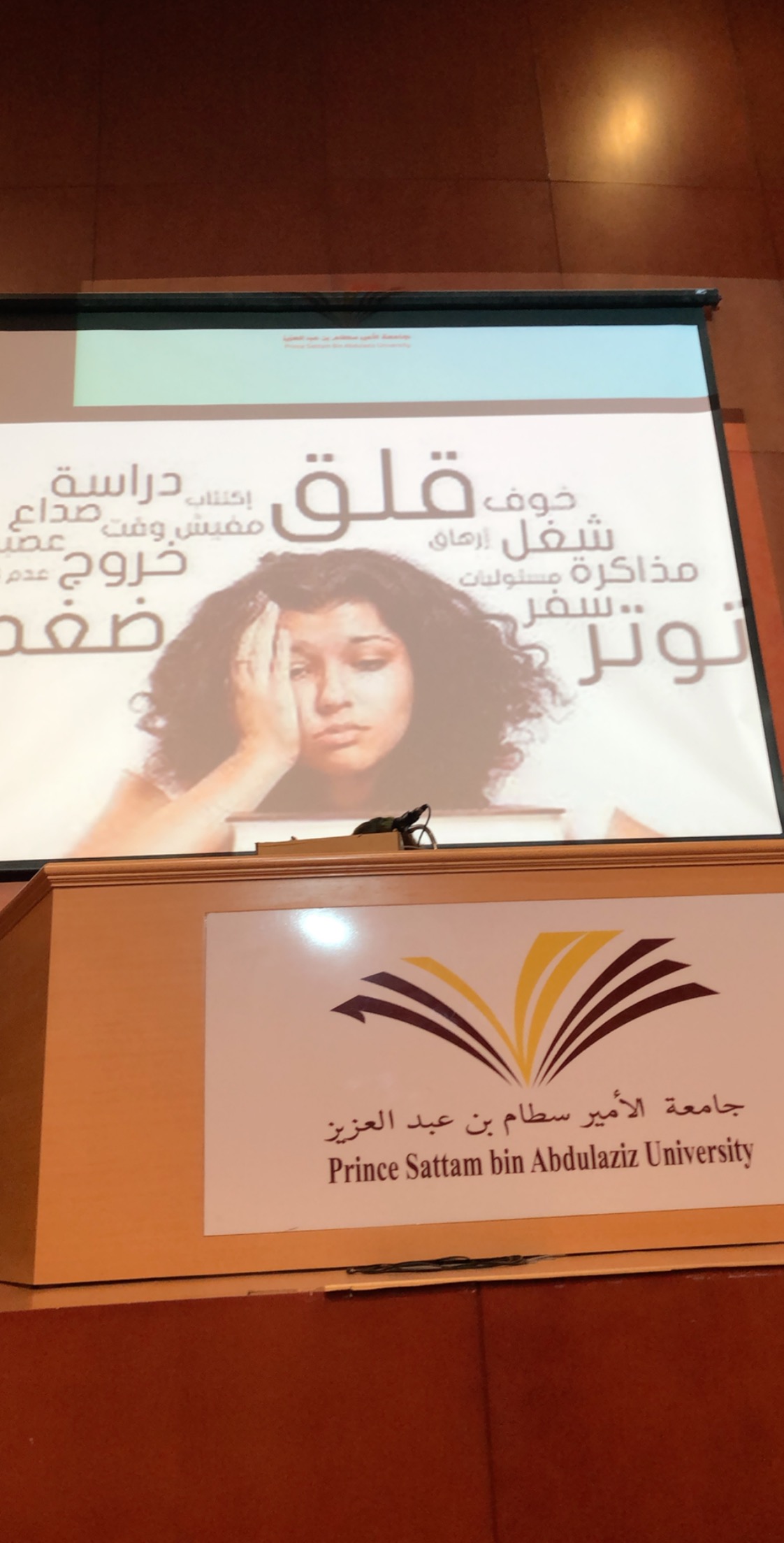 وألقيت محاضرة الضغوط النفسية للدكتورة/ نهلة القرعان-عضو هيئة التدريس بقسم علم النفس-