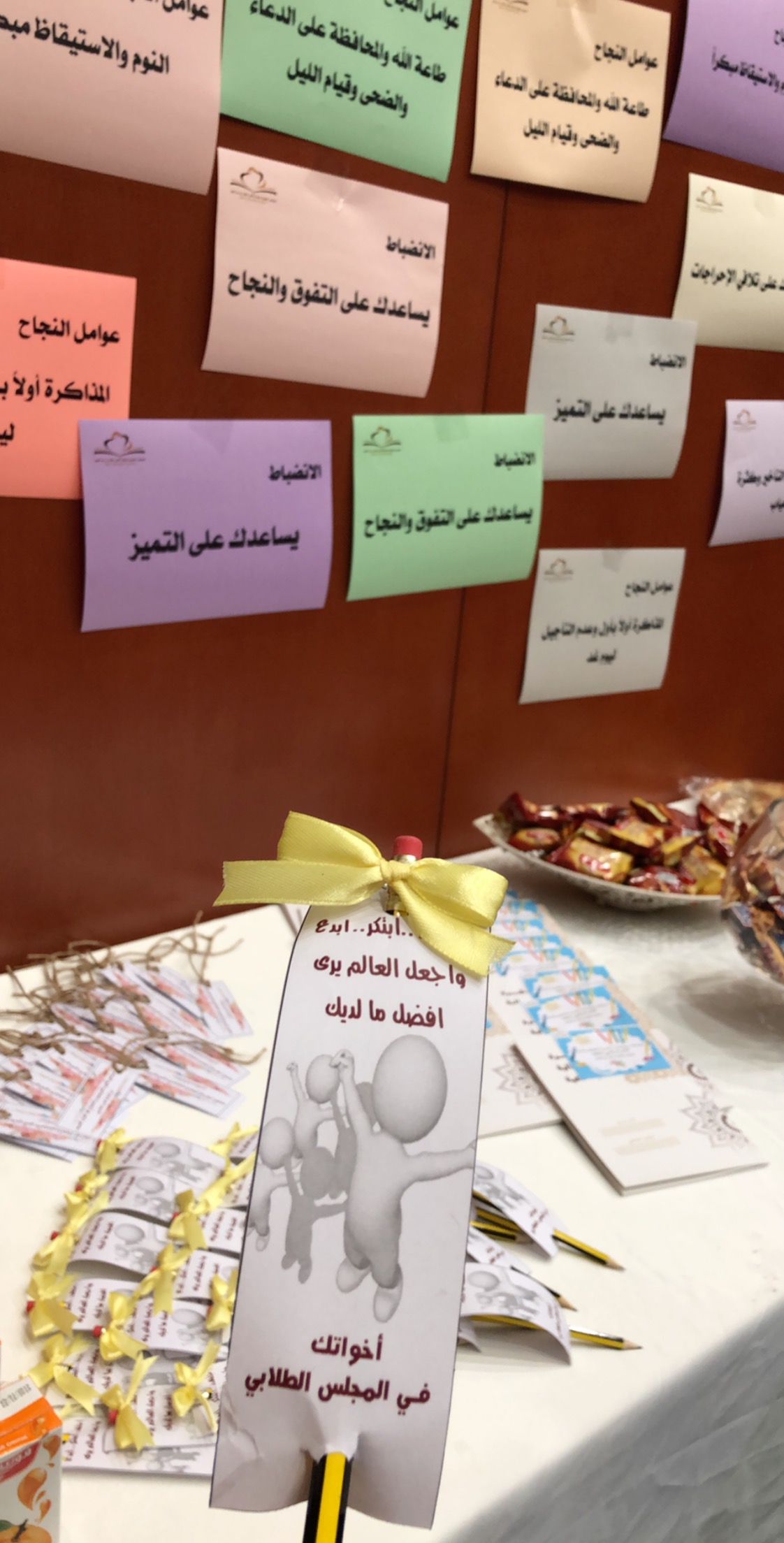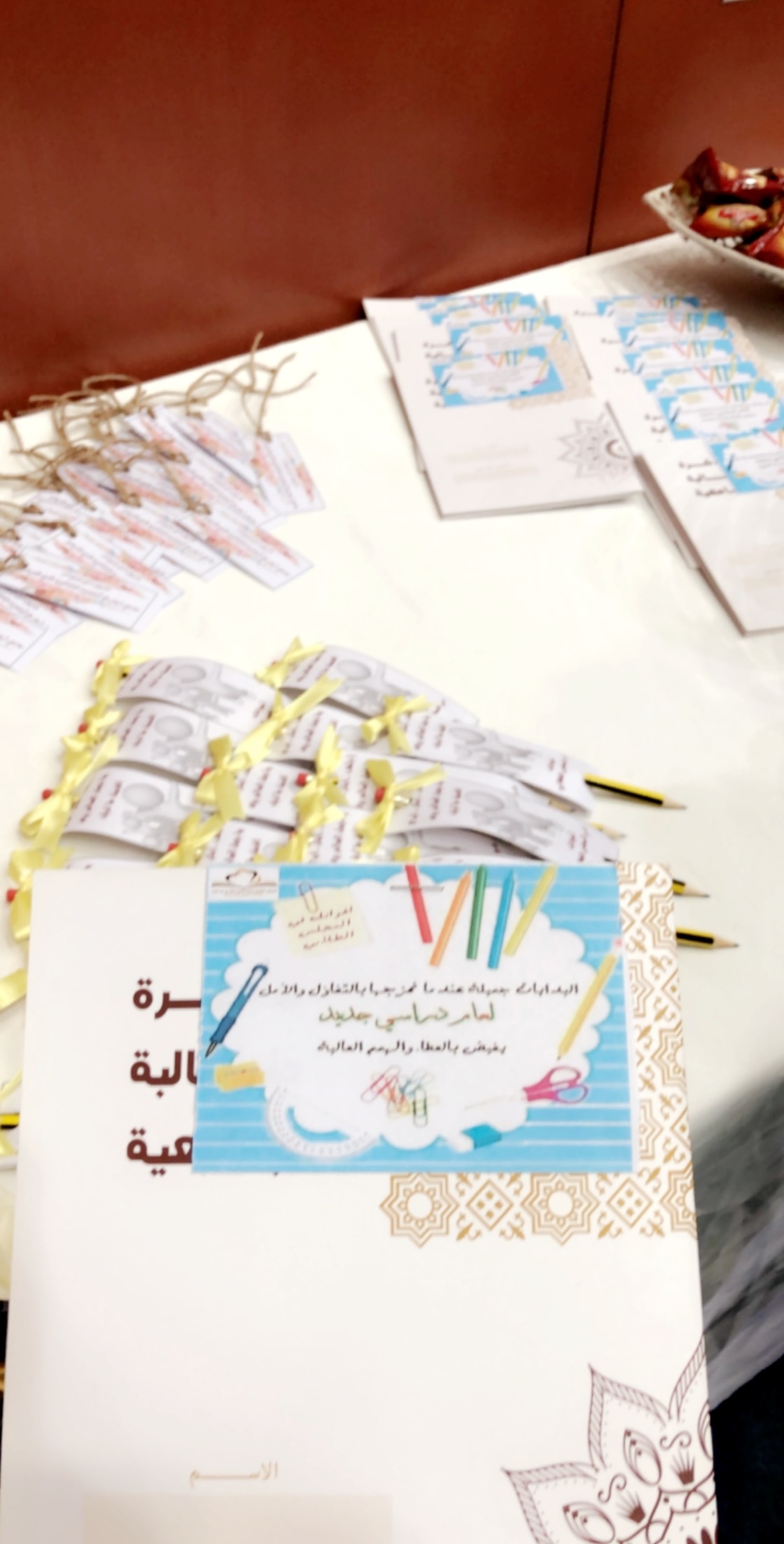 كما شاركت طالبات المجلس الطلابي بالترحيب وتقديم التوزيعات للمستجدات..
