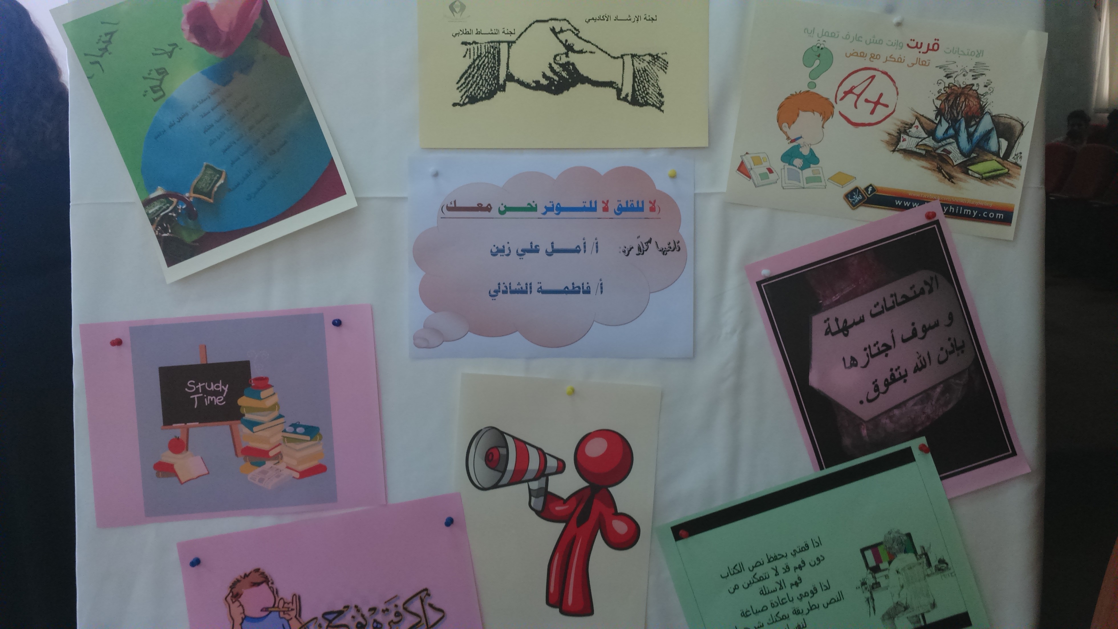 أقامت لجنة الارشاد الأكاديمي بالتعاون مع لجنة النشاط الطلابي ورشة عمل بعنوان ( لا للقلق لا للتوتر نحن معك ) من إعداد أ. أمل زين أ. فاطمة الشاذلي.