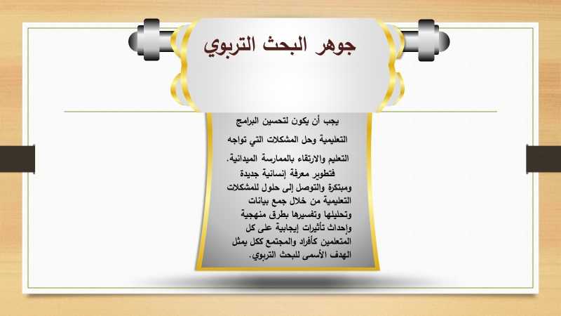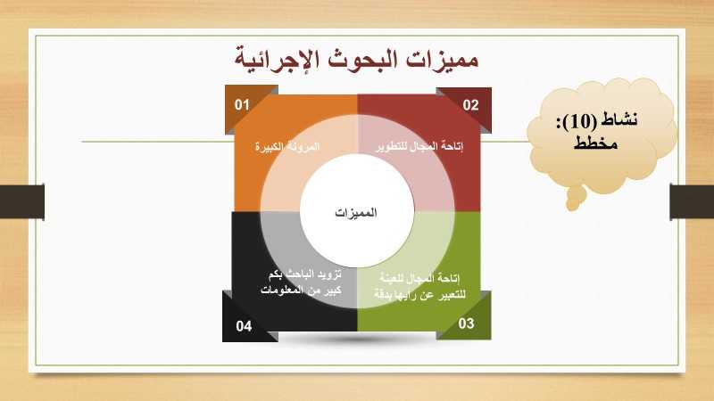 - شرح مميزات البحوث الإجرائية ومقترحات تطوير تطبيقها في الميدان التعليمي.