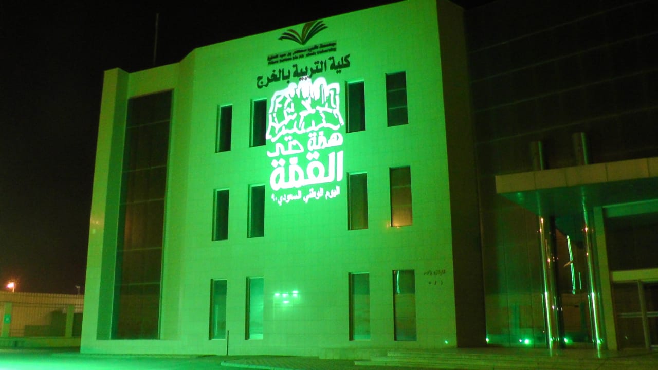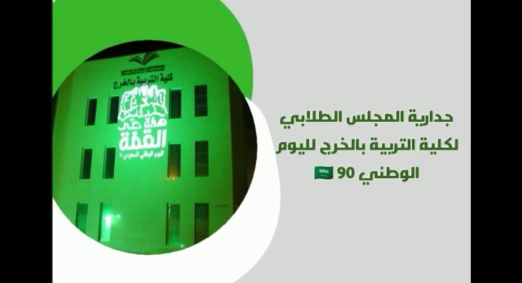 تحت رعاية سعادة الدكتور/عبدالرحمن بن عبيد الرفدي عميد كلية التربية بالخرج،احتفلت وحدة العمل الطلابي بالتعاون مع وحدة العلاقات العامة باليوم الوطني (90) تحت شعار (همة حتى القمة )